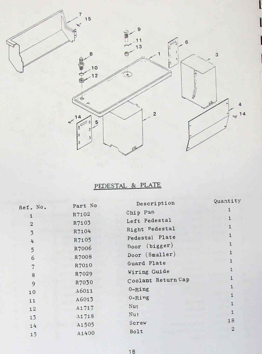 Contents: Specification...................................1 Legend..........................................2 General Dimensions..............................3 Installation....................................4 Leveling........................................5 Electrical......................................6 Lubrication.....................................7 Chuck Mounting..................................8 Operating Instructions..........................9 Headstock......................................10 Gear Box.......................................11 Feed Engagement................................12 Treading Dial..................................12 Tailstock......................................12 Taper Attachment...............................13 Metric Threads.................................14 PARTS LISTS & DIAGRAMS Headstock...................................15-19 Gear Box....................................20-25 Apron.......................................26-27 Carriage.......................................28 Compound Slide.................................29 Tailstock......................................30 Bed & Shafts................................31-34