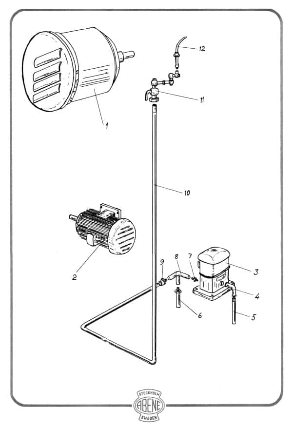 This is a reproduction, not a photocopy, of an original Abene of Stockholm Sweden VHF-2B Parts Manual. This Abene manual contains explosive view diagrams of all the parts with parts list and descriptions for this mill.