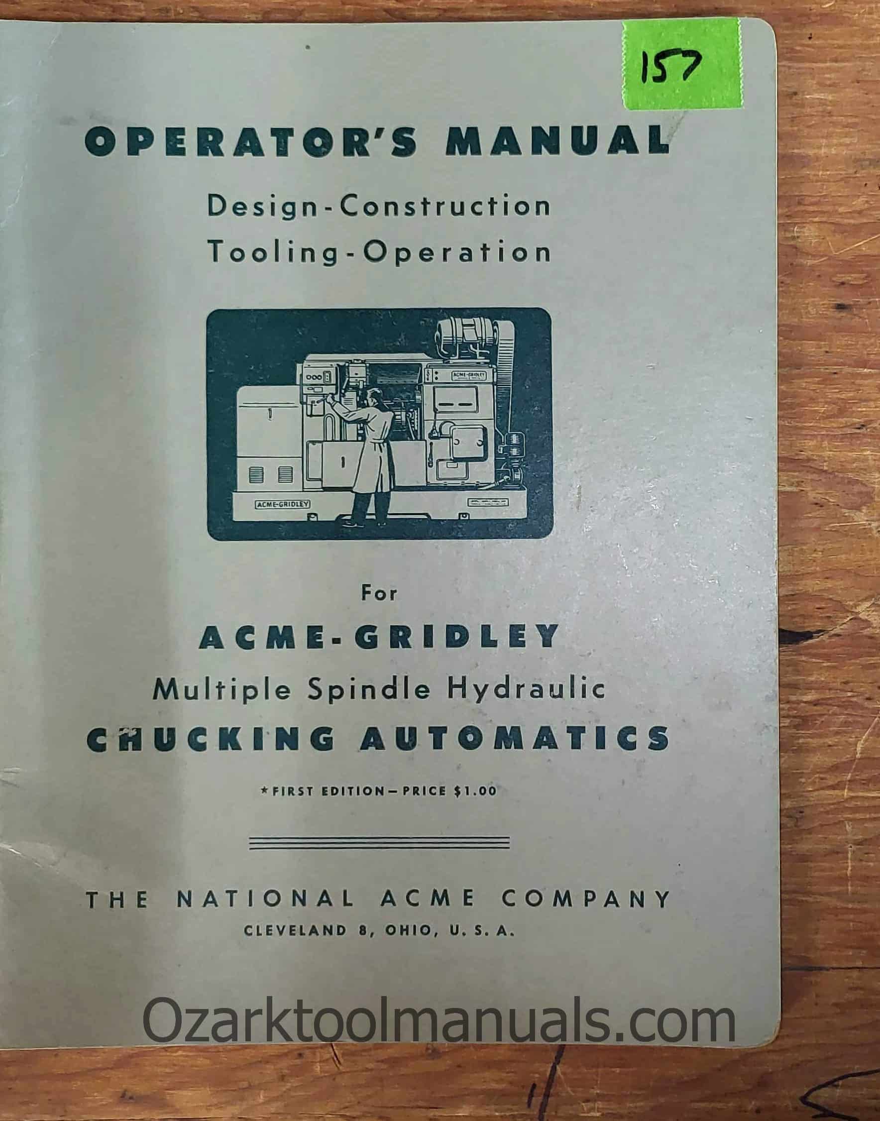 Acme-Gridley Multiple Spindle Chucking Automatic Bar Machines Operator Instructions Manual