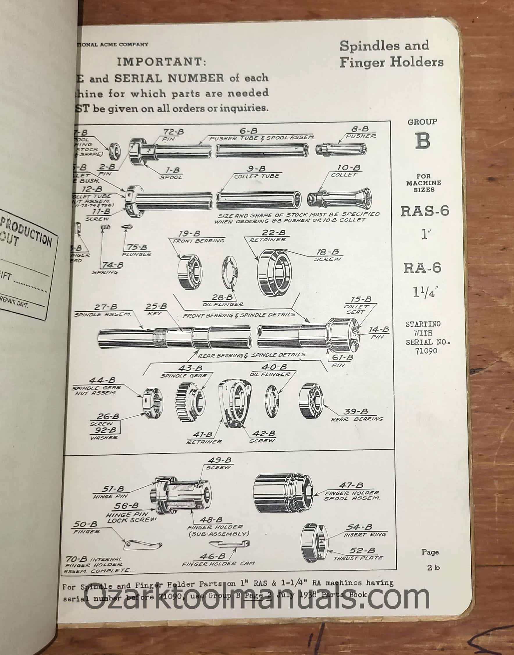 Acme-Gridley R, RA-4 RA-6 3/8″-1 5/8″ Automatic Bar Machines 1944 Parts Manual