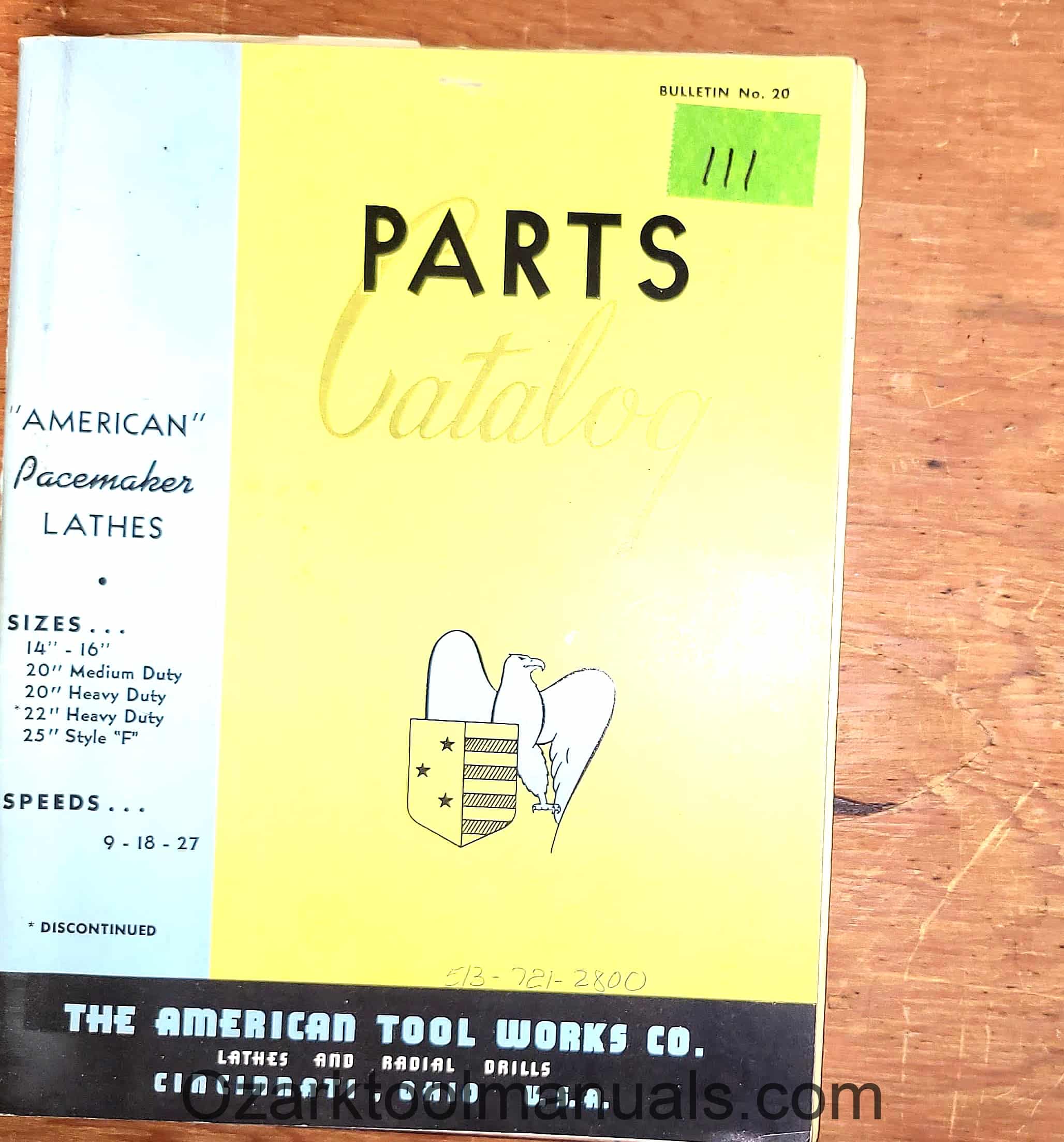 American Tool Works 14″, 16″, 20″, 22″, 25″ Metal Lathe Pacemaker Parts Manual 2
