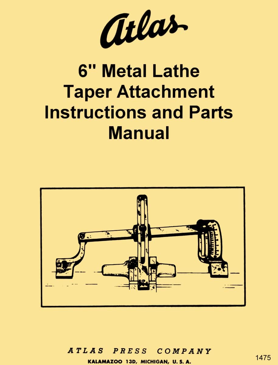 This is a reproduction, not a photocopy, of an original Atlas Craftsman M6-700 Taper Attachment for 6″ Metal Lathes Instructions and Parts manual. This manual contains 13 pages from the Atlas/Craftsman Manual of Lathe Operations on how to turn a taper with various methods. The instructions cover how to turn a taper by offsetting your tailstock. The manual covers how to install and operate the taper attachment. We’ve included reference data for Morse and Brown & Sharpe tapers. This manual also has the instruction sheet with the explosive view parts diagrams for this 6″ taper attachment for Atlas-Craftsman metal lathes.