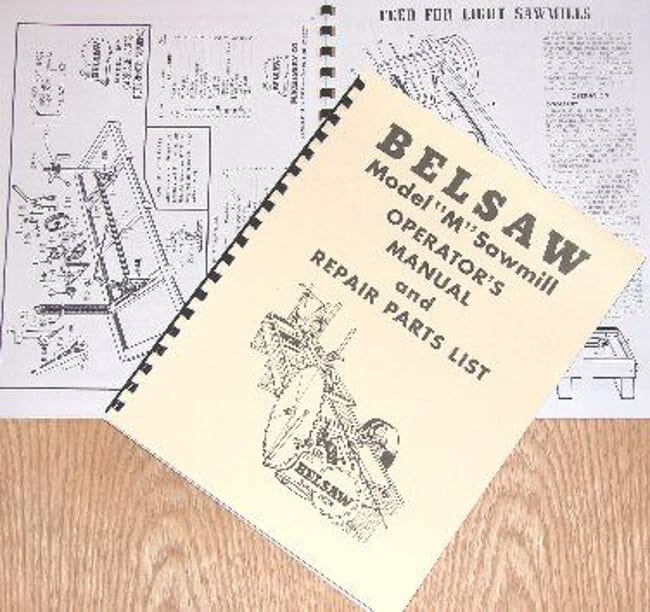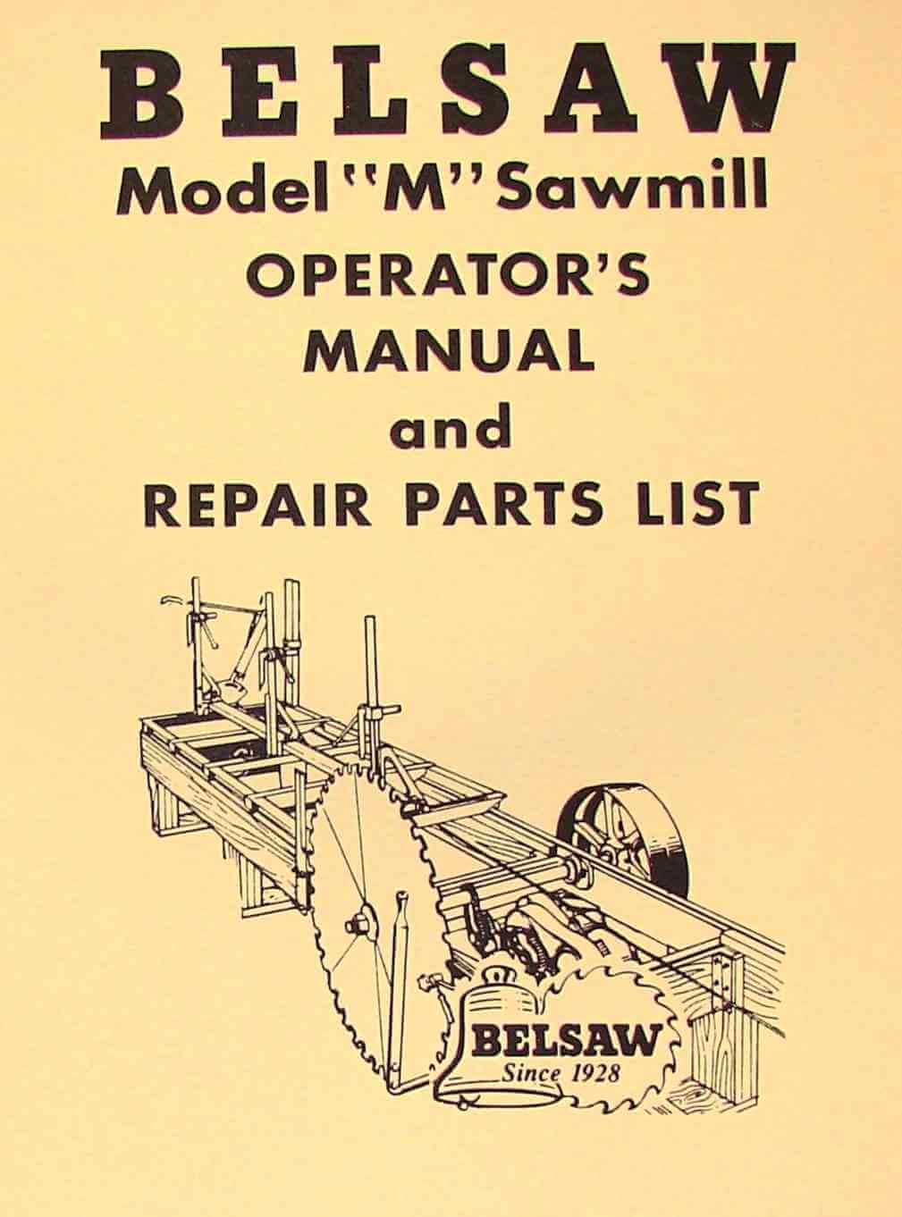 This is a reproduction of an original Belsaw Model “M” Sawmill Operator’s and Parts Manual. This manual contains information on setup and construct a base for the machine. It also covers lubrication, maintenance, and controls as well as a complete parts list. There is a page on carriage operation and maintenance, and one on how to set up and saw typical logs. It contains a lot of information on types of saw blades and saw blade parts. If you own this machine and you don’t have the manual, this is well worth the money.
