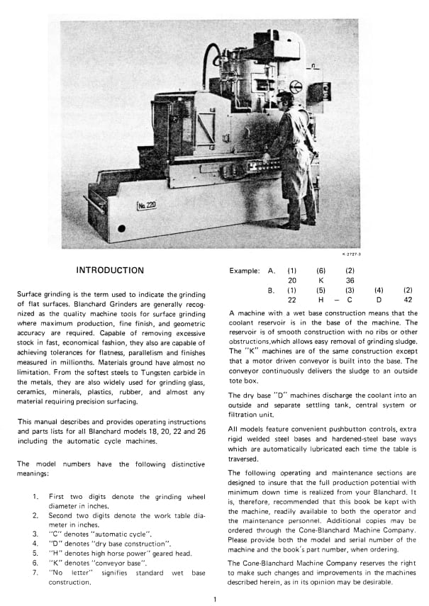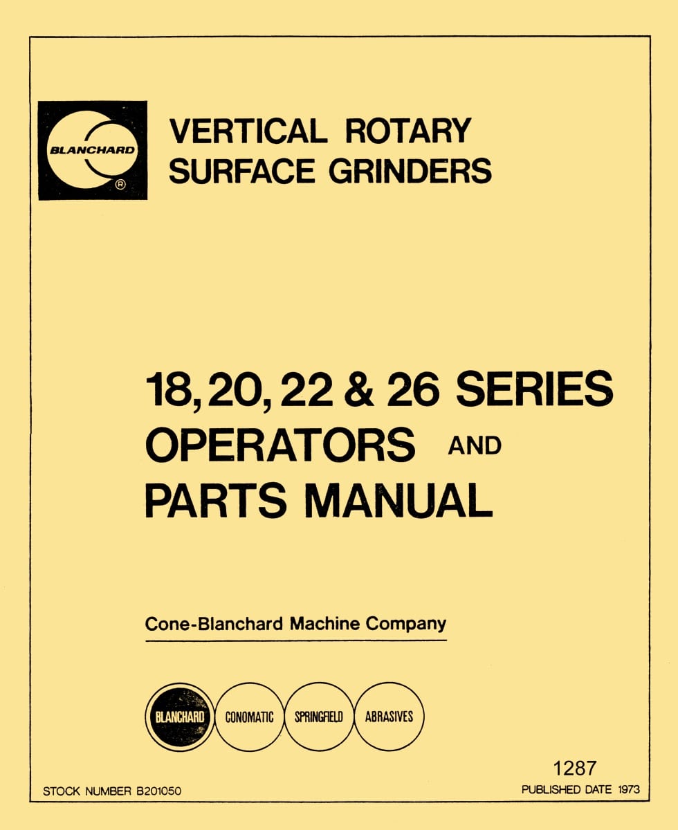 BLANCHARD 18, 20, 22 & 26 Series Surface Grinder Operator’s, Maintenance & Parts Manual ’73