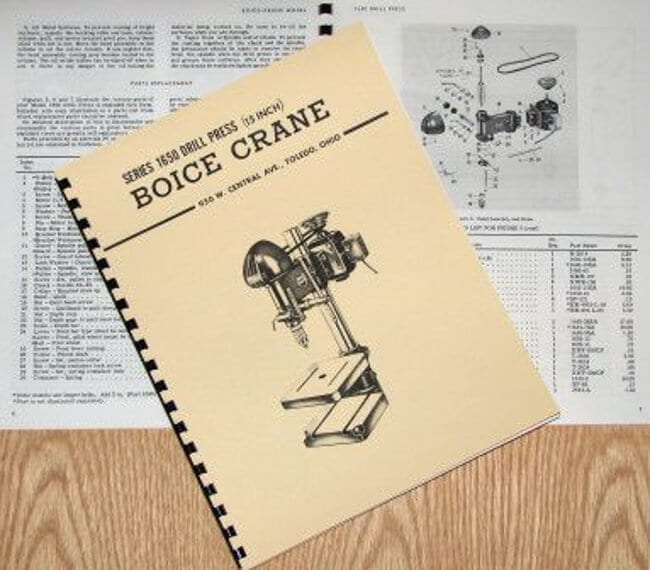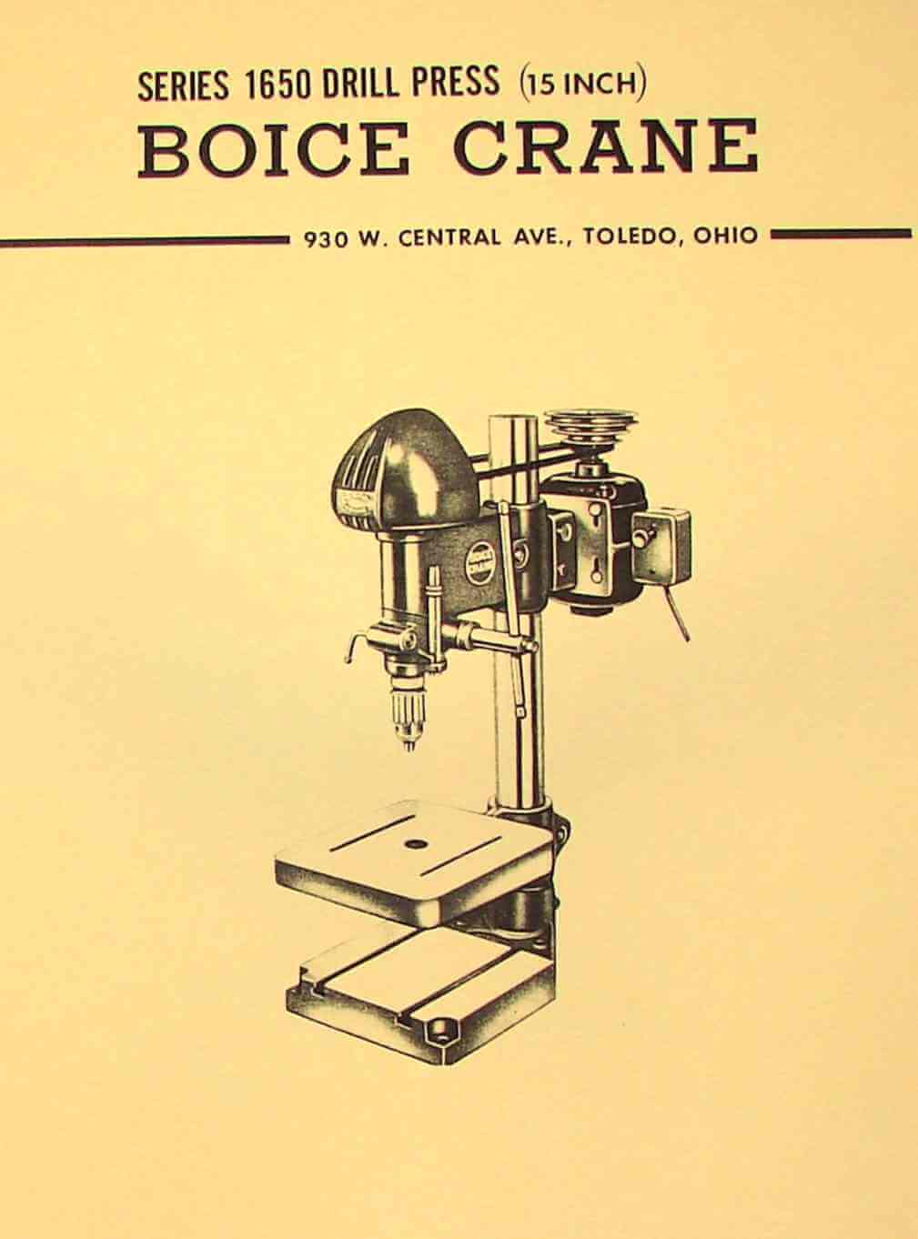 This is a reproduction, not a photocopy, of an original Boice Crane Series 1650 15-inch Drill Operating and Parts Manual.