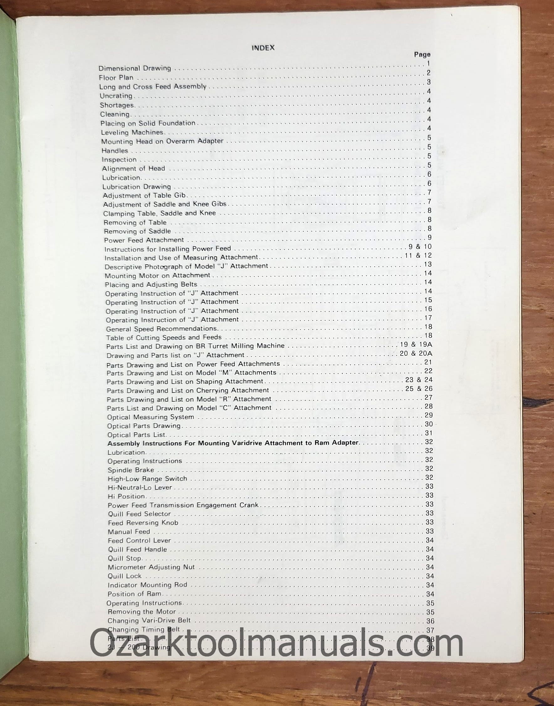 Bridgeport J Head Step-Pulley Vertical Knee Mill Operator Instructions Parts Manual