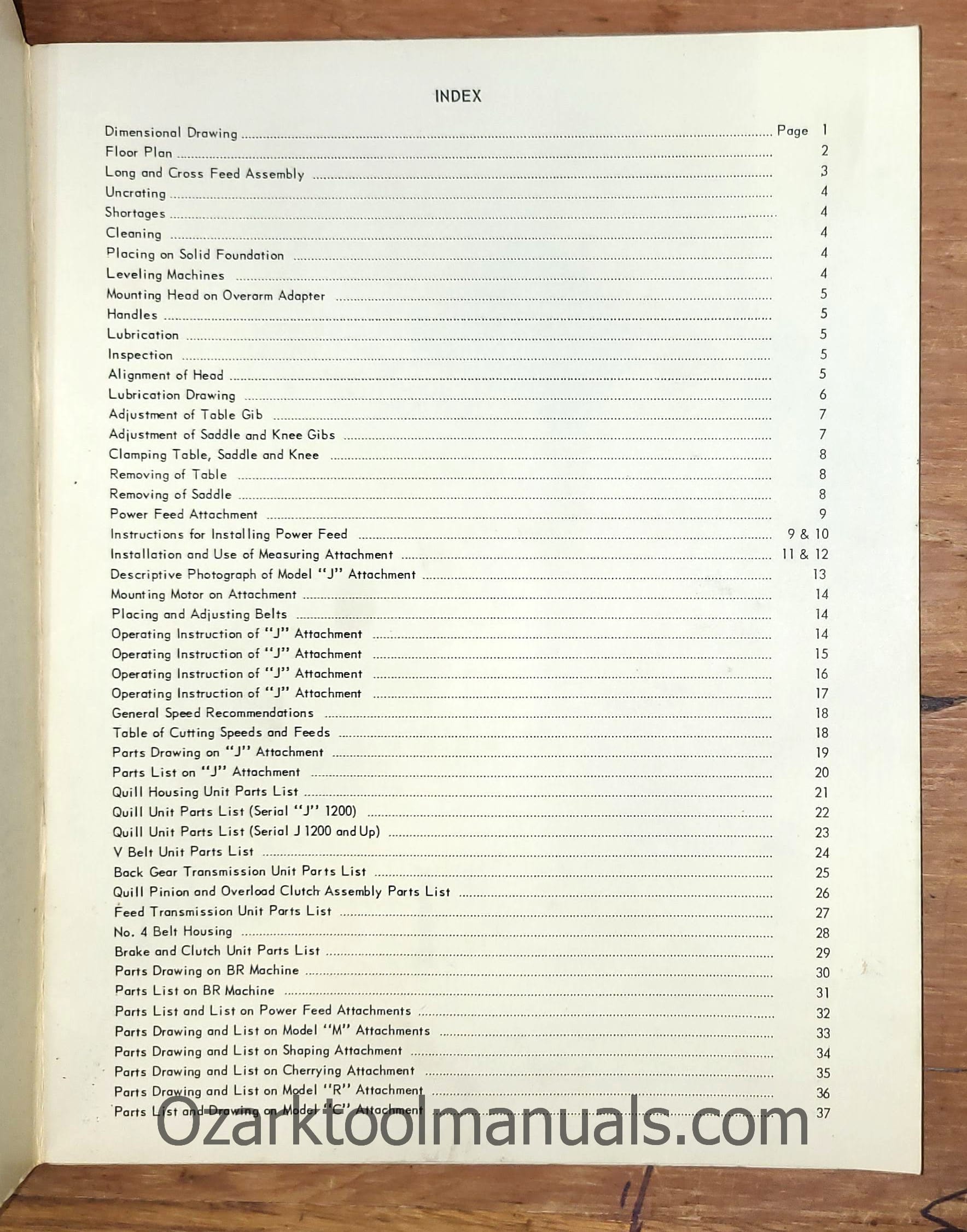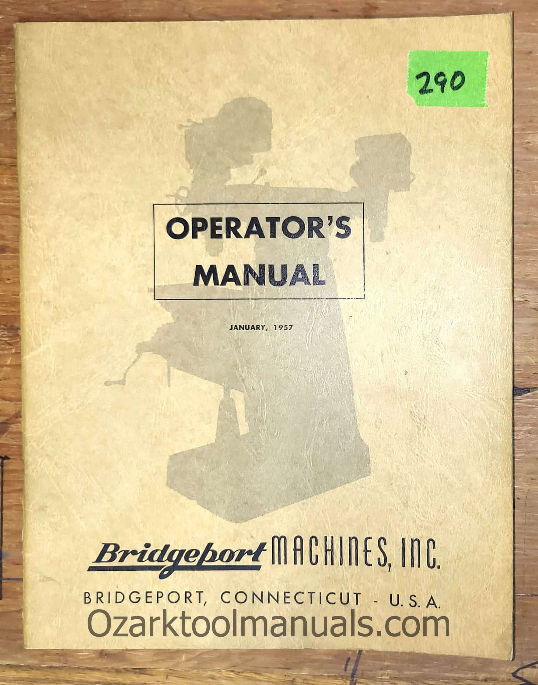 Bridgeport J Head Vertical Knee Milling Machine Operator Instructions Parts Manual
