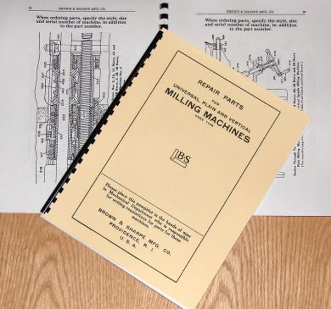 This is a reproduction, not a photocopy, of an original Brown & Sharpe Milling Machines Parts Manual. This manual is for models made in the 1920’s or 1930’s. It seems to cover all the milling machines that they made at the time including horizontal and vertical mills, and includes cross sectional diagrams of the parts. It also includes parts diagrams of the accessories, including the universal dividing head that they made at the time. The models include: