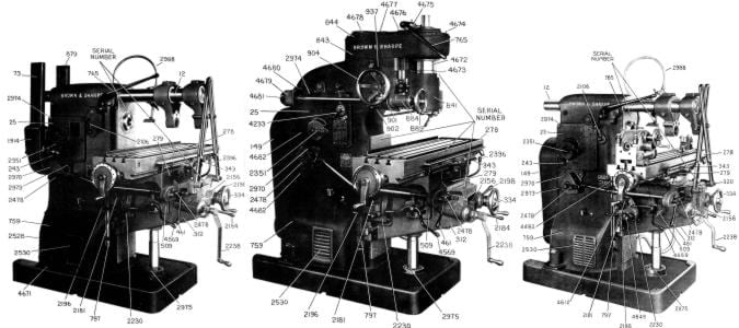 This is a reproduction, not a photocopy, of an original Brown & Sharpe 2, 2A, 2B, 3, 3A, and 3B Parts Manual. This manual contains complete set of part with pictorial view as shown in the picture above.