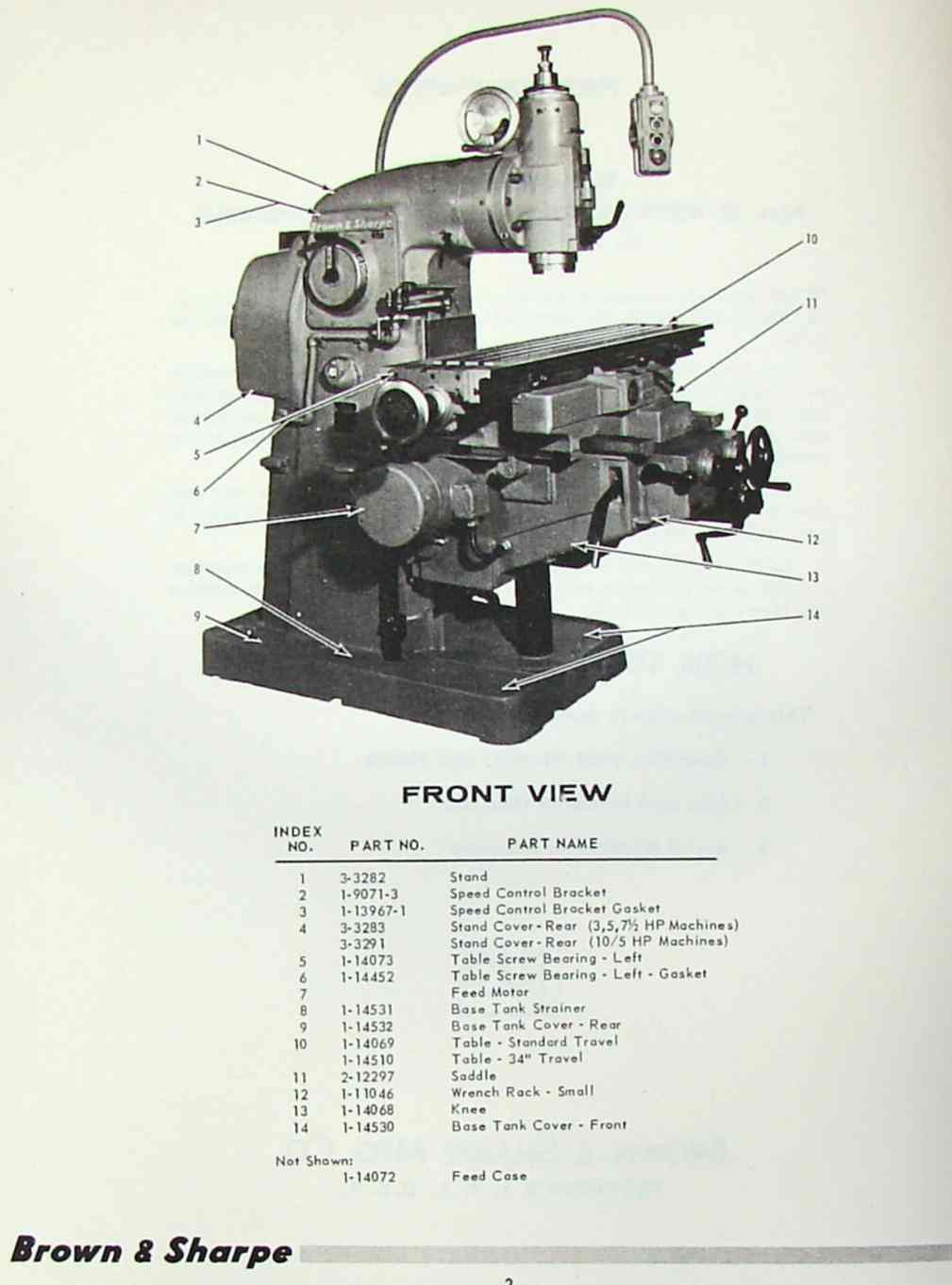 This is a reproduction, not a photocopy, of an original Brown & Sharpe Repair Parts Manual for the Dynamaster No. 2 Vertical Milling Machines. This manual contains exploded view diagrams of all the parts.