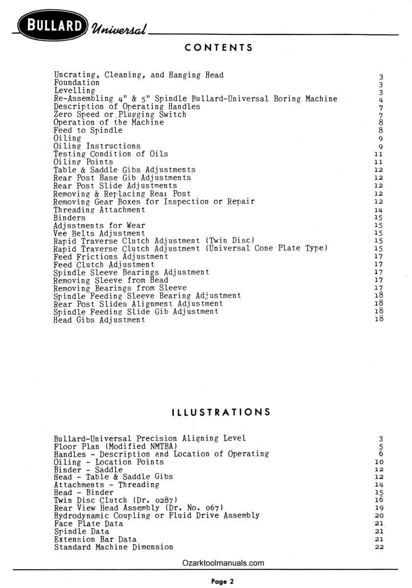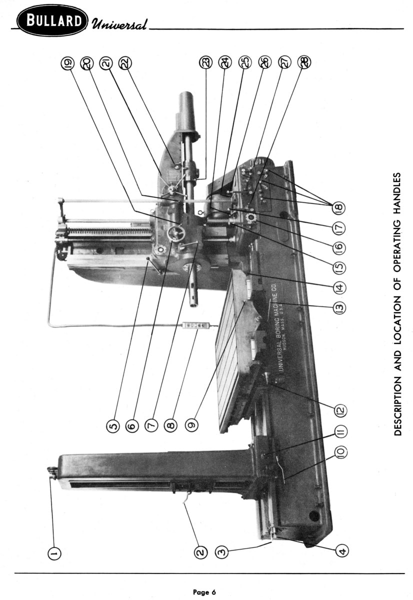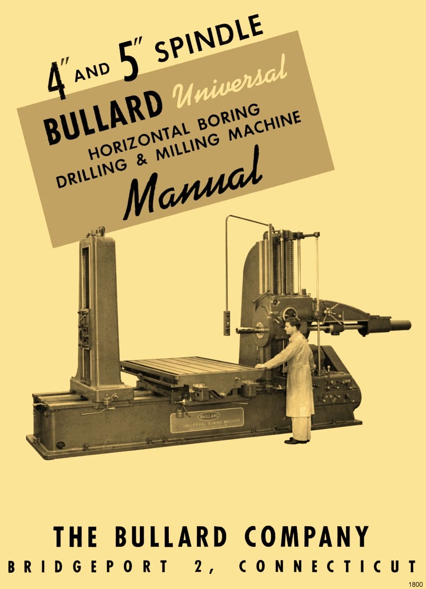 This is a reproduction, not a photocopy, of an original Bullard Universal Horizontal Boring Drilling & Milling Machine with a 4-inch or 5-inch Spindle Operations and Maintenance Manual. This manual contains information on lifting, installation, leveling, reassembling, and building a foundation for these machines. The manual has proper operating procedures and a lubrication chart with information about proper oiling. This Bullard manual has lots of information about maintenance and various adjustments to the gibs, removing and replacing the rear post and gearboxes. There are sections on how to adjust the different clutches, like the rapid traverse clutch. Sections on adjusting various bearings, like the spindle bearings, and more. Please see the complete index pictured.
