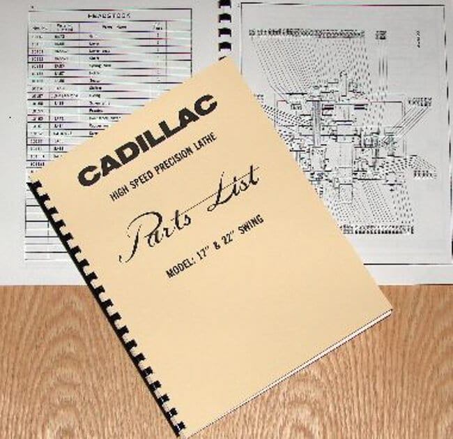 This is a reproduction, not a photocopy, of an original Cadillac 17″ and 22″ Metal Lathe Parts manual. It covers the 17″x33″, 17″x49″, 17″x60″, 17″x80″, 17″x100″, 22″x120″, and the 22″x158″ models. It contains cross-sectional view diagrams of the parts for these lathes. This manual also includes a complete wiring diagram schematic.