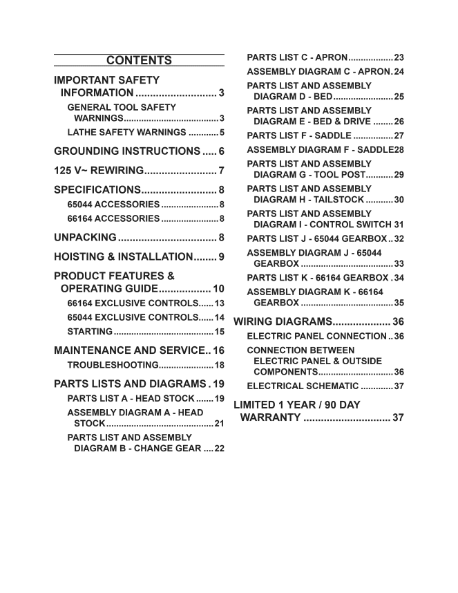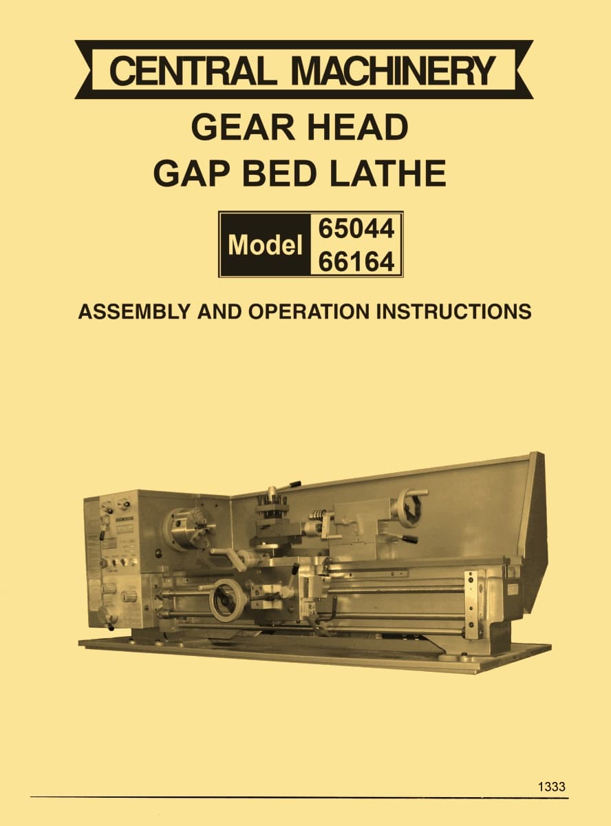 This is a reproduction, not a photocopy, of an original Harbor Freight Central Machinery 12″ x 36″ and 13″ x 40″ Metal Lathes Models 65044, 66164 Owner, Operator and Parts Manual. This manual contains the metal lathe specifications, safety instructions, operating instructions, and maintenance. This Central Machinery manual also has instructions for lubrication and wiring diagrams. It also has explosive view diagrams of all the parts with parts list and descriptions for this Central Machinery 12″ x 36″ and 13″ x 40″ Metal Lathes Models 65044, 66164, and the 1340A.