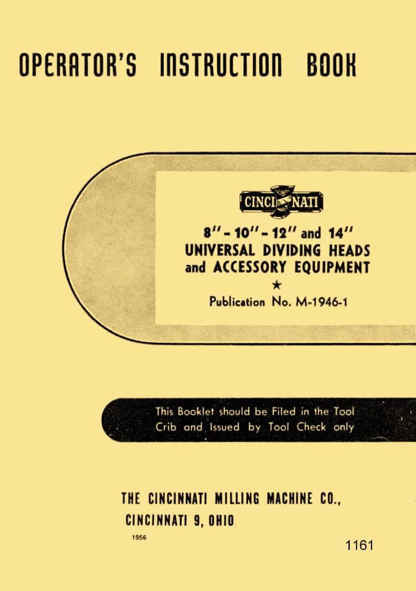 Cincinnati 8″-10″-12″-14″ Universal Dividing Heads Operator’s Instruction Manual