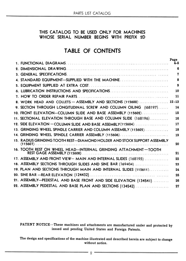 This is a reproduction, not a photocopy, of an original Cincinnati Monoset Cutter & Tool Grinder Model OE Parts Catalog Manual. The Cincinnati manual contains the grinder specifications, general layout of the machine, and proper lubricating instructions. This manual includes foldouts with cross sectional view diagrams of all the parts including the internal grinding attachment and toothrest gage assembly for this Cincinnati grinder.
