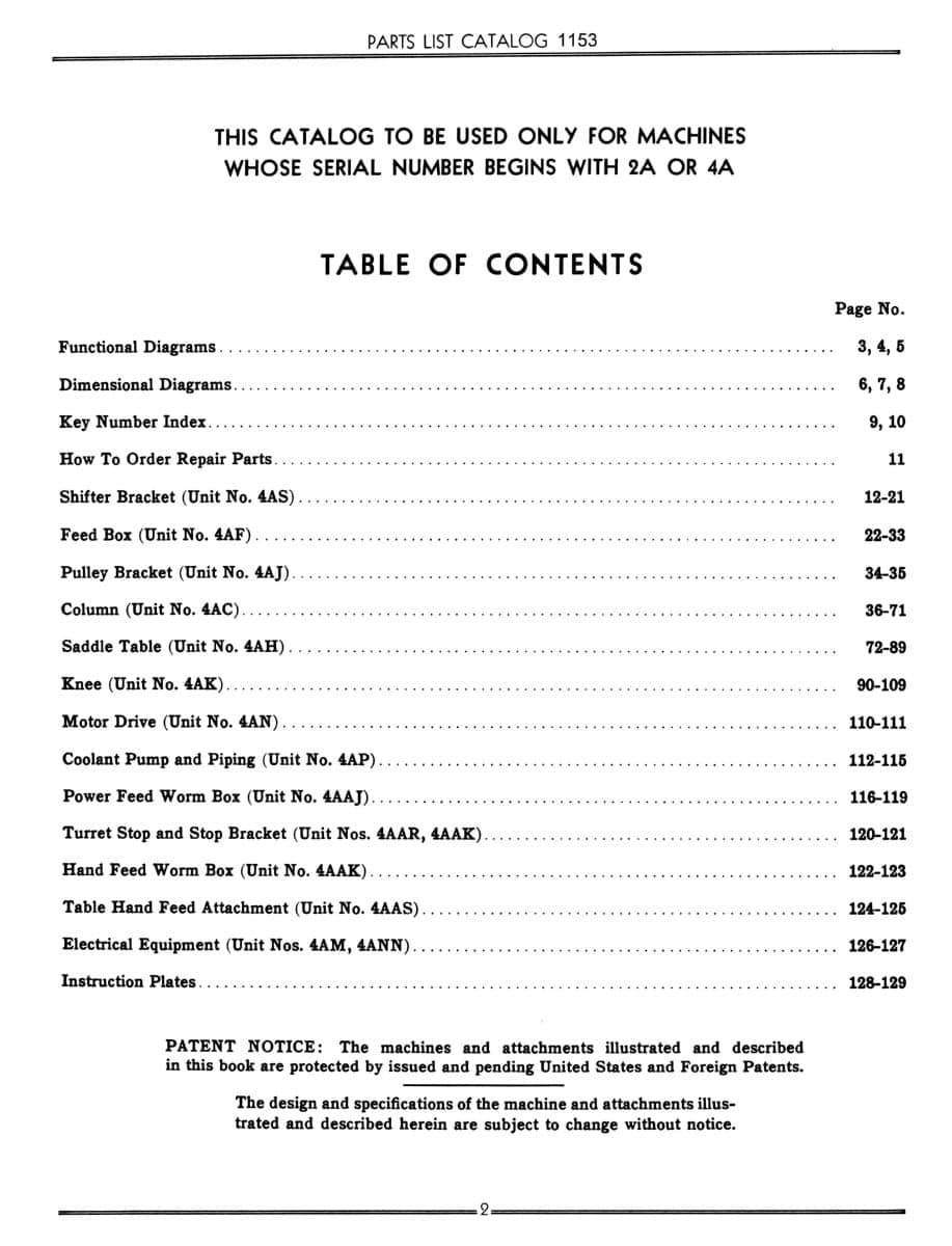 This manual would cover Cincinnati milling machines with serial numbers starting with either 2A or 4A, but this does not cover the No. 1 milling machines. No. 1 milling machines are model ER.