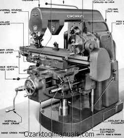 This is a reproduction, not a photocopy, of an original Cincinnati Nos. 2, 3, and 4 Dial Type Horizontal & Vertical Milling Machines Model OM parts manual. This manual gives specifications of each type of milling machine in detail. The Cincinnati manual contains clear explosive view diagrams of all the parts with parts descriptions for these milling machines. Please see contents pictured above, and the pictures of the Cincinnati milling machines covered in this manual.