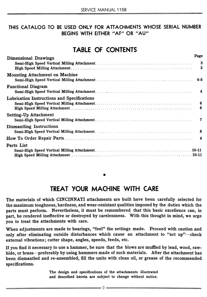 This manual covers Cincinnati attachments and accessories whose serial number begins with “AF” or “AU”.
