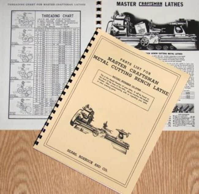 This is a reproduction, not a photocopy, of an original Craftsman 101.07383 Lathe Parts Manual with Threading Chart and Catalog page.