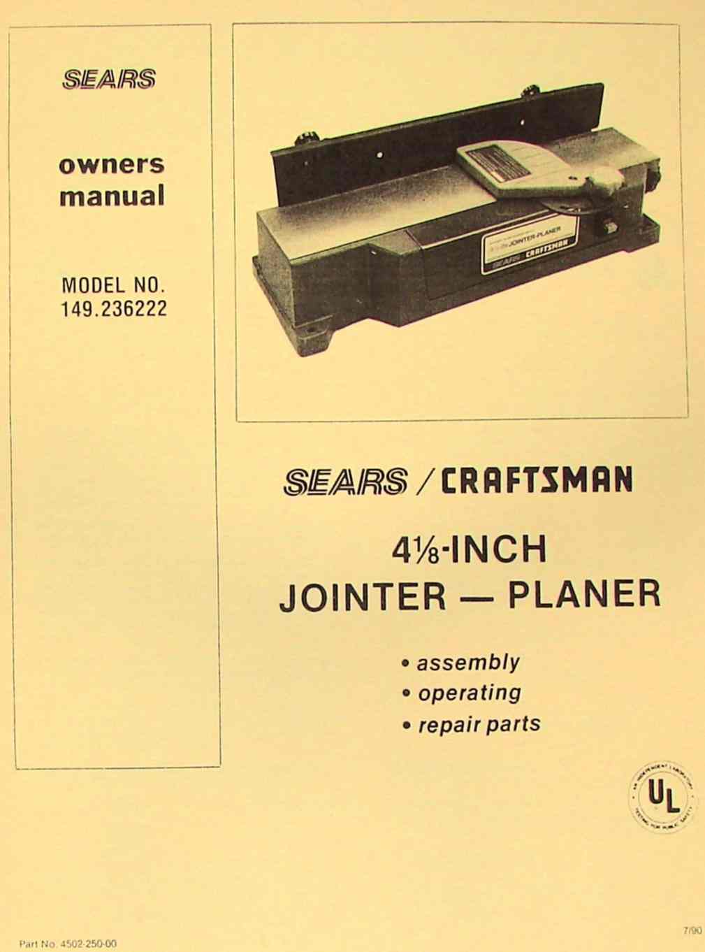 This is a reproduction, not a photocopy, of an original Craftsman 4 1/8″ Jointer 149.236222 Instructions and Parts Manual. This manual contains general safety instructions, operation instructions, assembly instructions, adjustments, maintenance, and a complete set of exploded view diagrams of the parts with description.