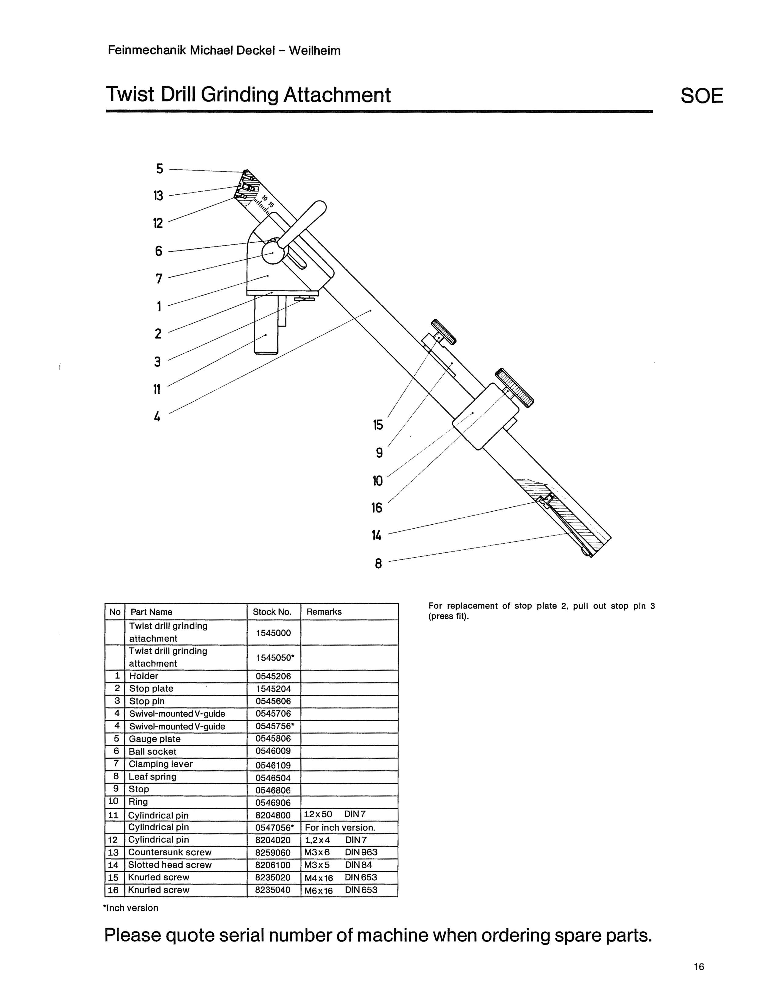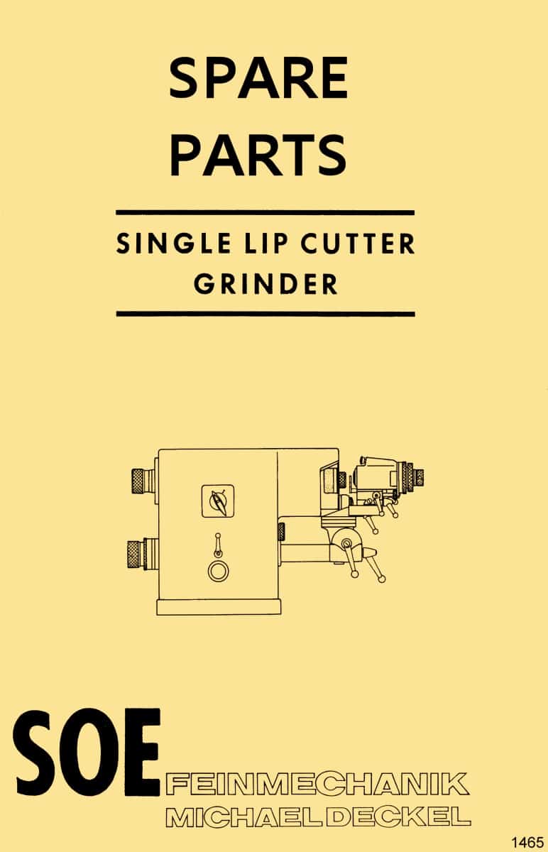 DECKEL SOE Universal Tool Cutter D-Bit Grinder Parts Manual