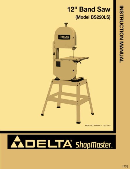 This is a reproduction, not a photocopy, of an original Delta Shopmaster 12″ Wood Band Saw Model BS220LS Instructions and Parts Manual. This manual contains information on how to properly setup this band saw and operate it. The manual covers how to correctly adjust the guides and wheels to track the blade correctly. It also contains clear explosive view diagrams of all the parts with parts lists and descriptions for these Delta band saws.