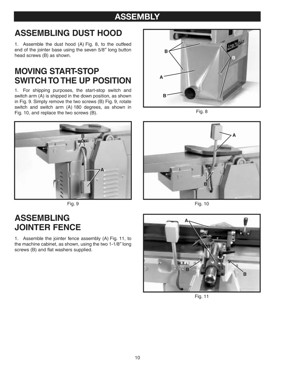 Delta 12″ Jointer DJ-30 37-360, 37-361 Owner Instruction Service Parts Manual