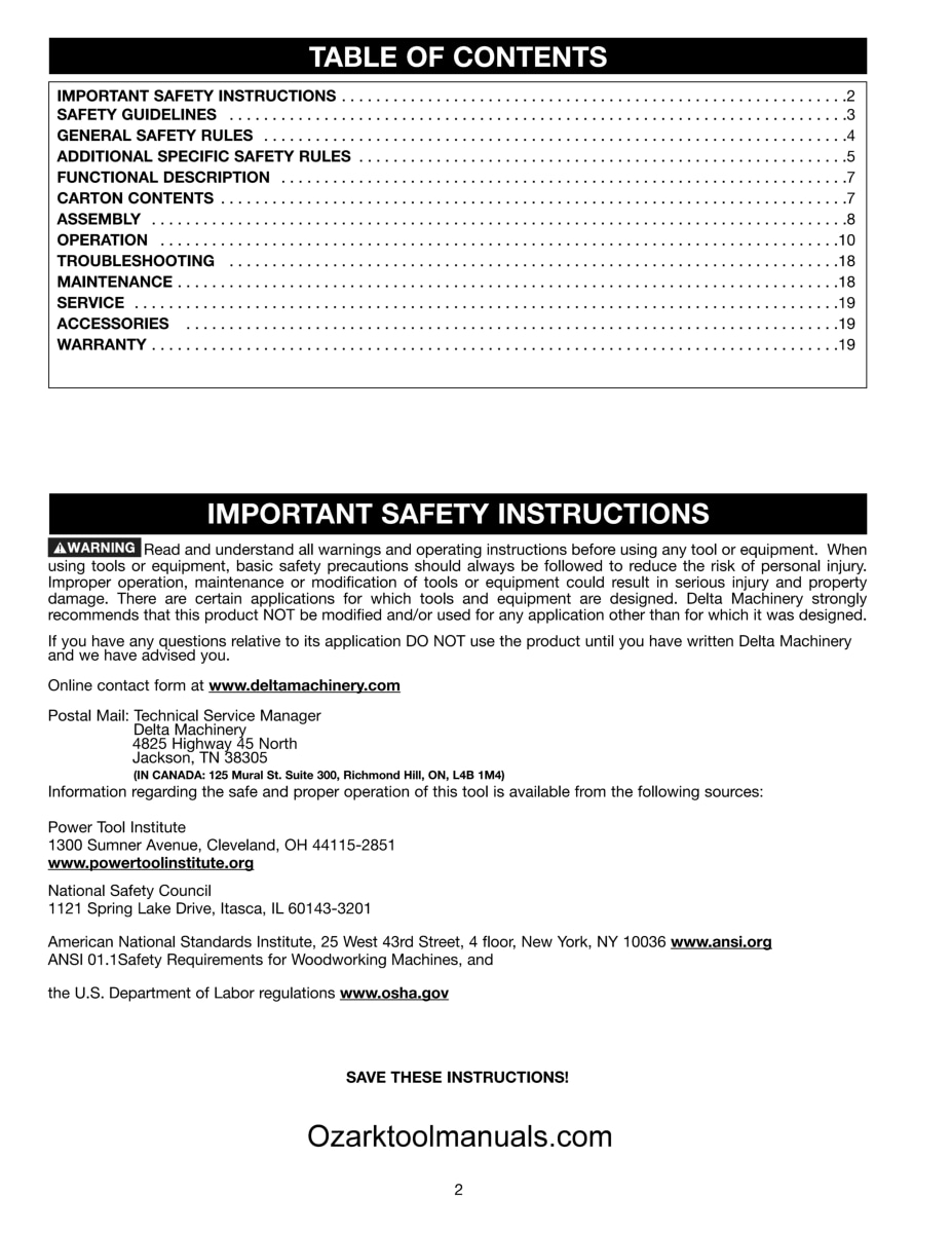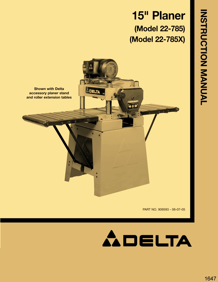 This is a reproduction, not a photocopy, of an original Delta 15″ Wood Planers Instruction and Parts Manual for models 22-785 and 22-785X. This manual contains information on setting up the planer, and proper operating procedures of all the features for this planer. It covers adjusting the drive belt tension, feed roll belt tension, how to adjust and replace knives, adjusting spring tension on feed rollers, adjusting the pressure bar, and more. The manual includes proper lubrication instructions, and it comes with a complete set of exploded view diagrams for these Delta 15″ Planers.
