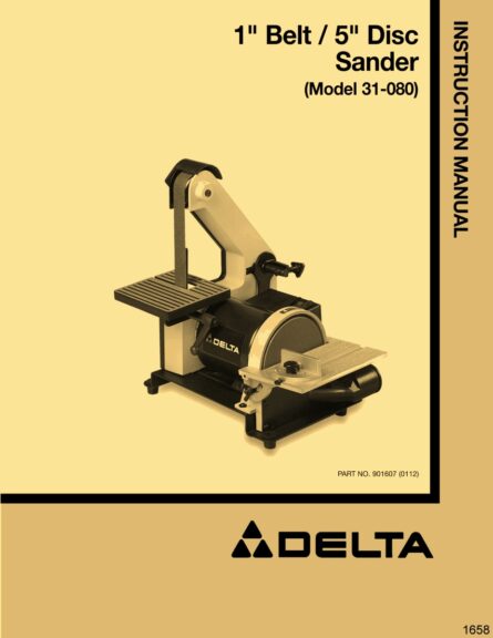 This is a reproduction, not a photocopy, of an original Delta 1″ Belt/ 5″ Disc Sander Instructions and Parts Manual for model 31-080. This manual contains information installation, operating instructions, belt adjustments, and explosive view parts diagrams of all the parts with descriptions for this Delta sander.