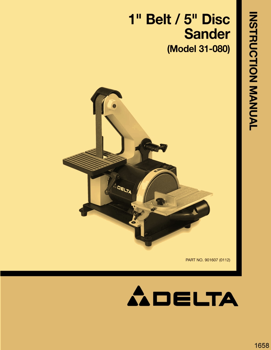 DELTA 31-080 1″ Belt/ 5″ Disc Sander Owner Instructions Service Parts Manual