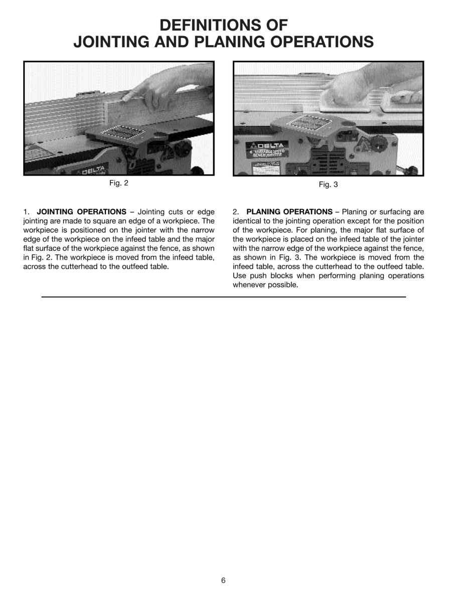 Delta 6″ Jointer 37-070 Owner Operating Service Parts Manual