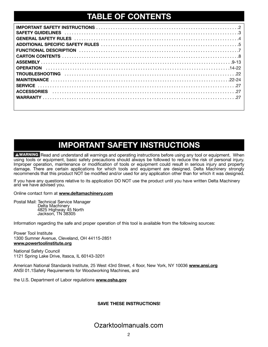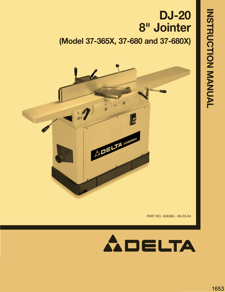 This is a reproduction, not a photocopy, of a Delta DJ-20 8″ Industrial Jointer Instruction and Parts Manual for models 37-365X, 37-680 and 37-380X. This manual contains information on installation, assembling, adjusting instructions, replacing the knives, and proper operating instructions. It also has a complete set of clear exploded view diagrams of all the parts with parts list and descriptions for these Delta jointers.