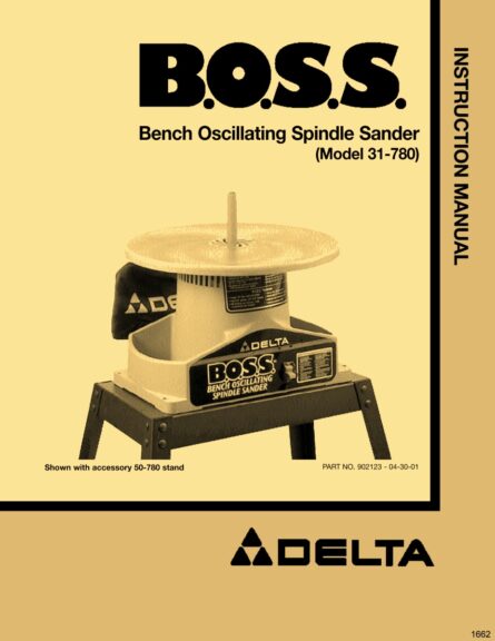 This is a reproduction, not a photocopy, of an original Delta B.O.S.S. Bench Oscillating Spindle Sander Instructions and Parts Manual for models 31-780 and 31-781. This manual contains information installation, operating instructions, spindle installation, adjustment instructions, wiring diagram, and maintenance instructions on how to grease this sander. There are also a complete set of clear explosive view diagrams of all the parts with parts list and descriptions.