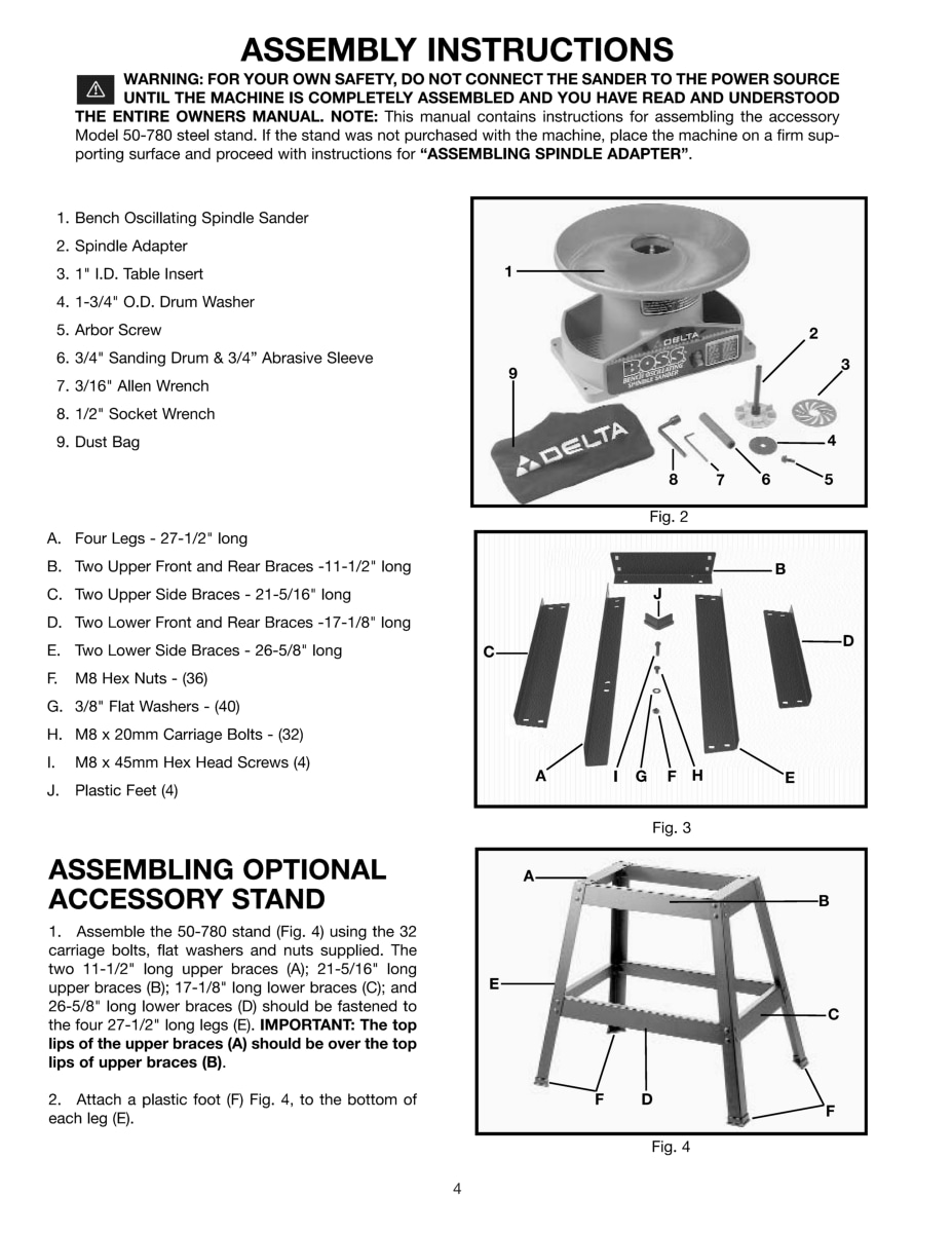 DELTA BOSS 31-780, 31-781 Oscillating Sander Owner Instructions Service Parts Manual