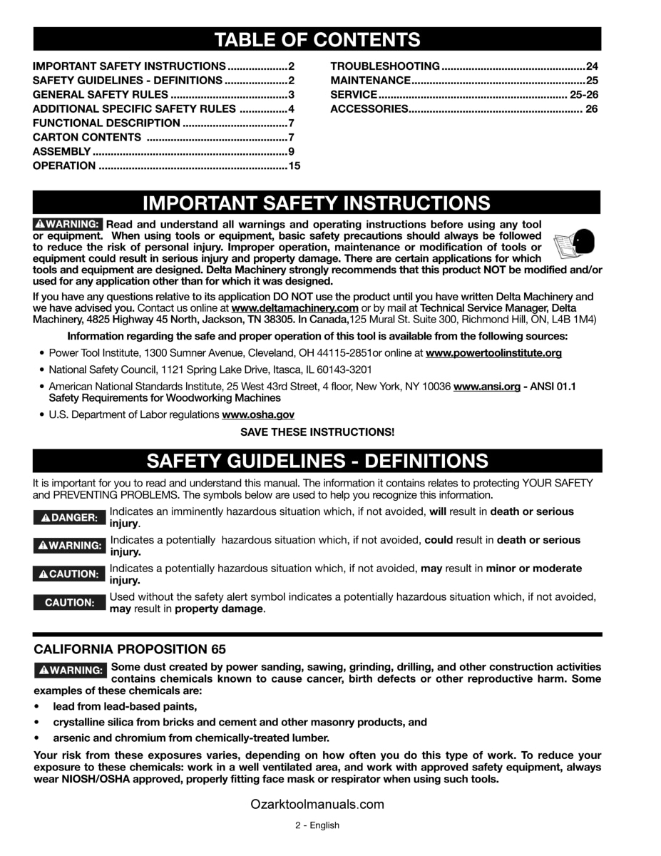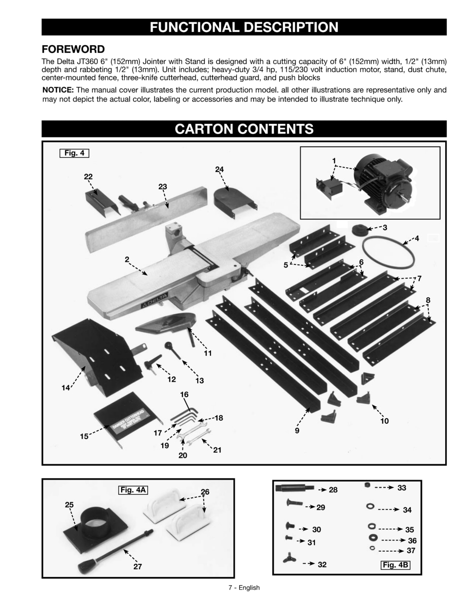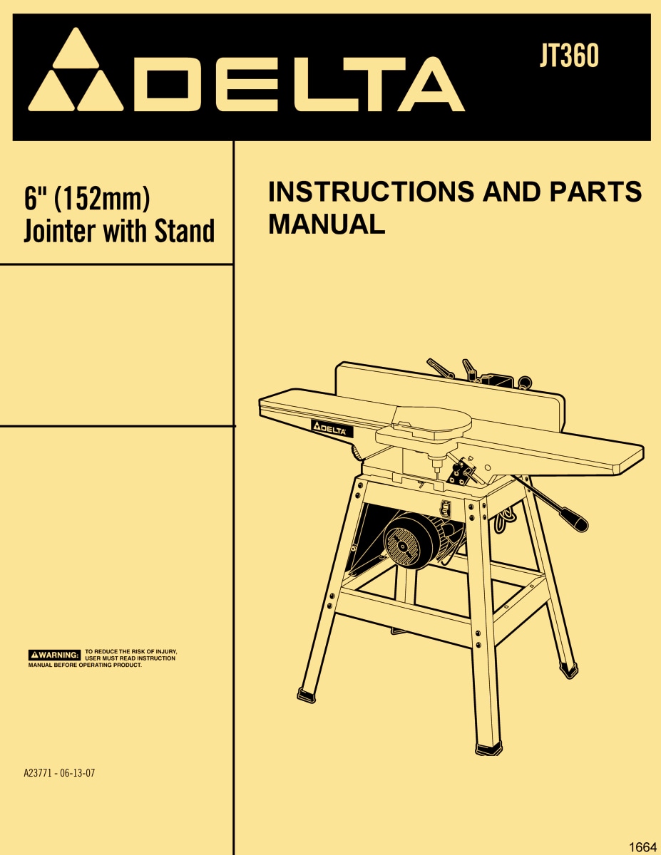 This is a reproduction, not a photocopy, of a Delta 6″ Deluxe Jointer Instruction and Parts Manual for model JT360. This manual contains information on installation, assembling, adjusting instructions, replacing the knives, and proper operating instructions. It also has a complete set of clear exploded view diagrams of all the parts with parts list and descriptions for this Delta jointer.