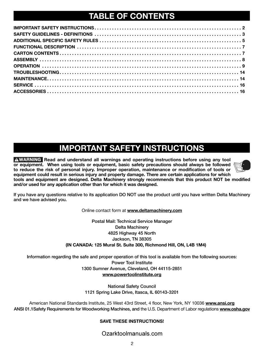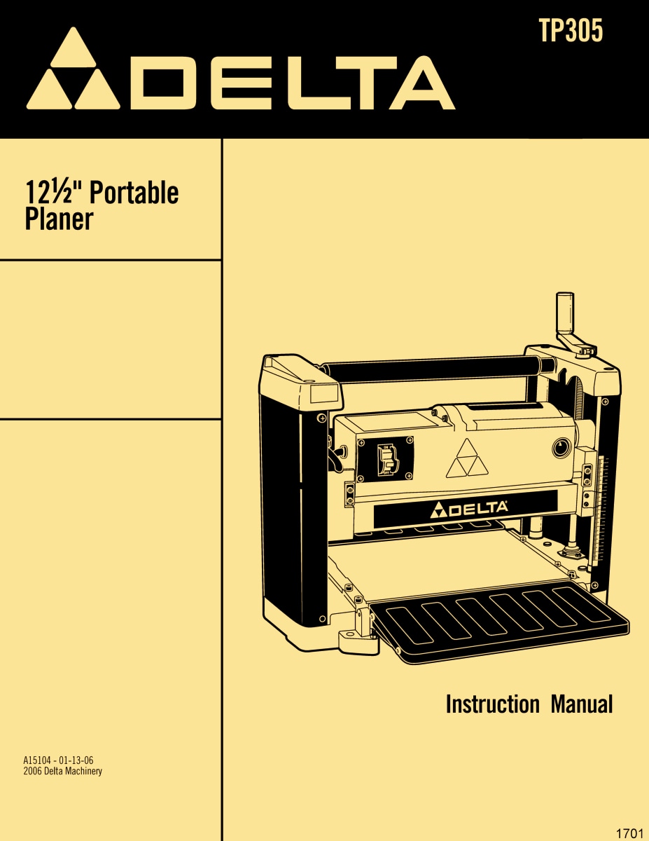 This is a reproduction, not a photocopy, of an original Delta 12-1/2″ Portable Woodย Planer TP305 Instruction and Parts Manual. This manual contains information on setting up the wood planer and proper operating procedures of all the features for this planer. It covers adjusting the drive belt tension, feed roll belt tension, how to adjust and replace knives, adjusting spring tension on feed rollers, adjusting the pressure bar, and more. The manual includes proper lubrication instructions, and it comes with a complete set of exploded view diagrams of all the parts, with parts lists and descriptions for this Delta TP305 12.5″ Planer.