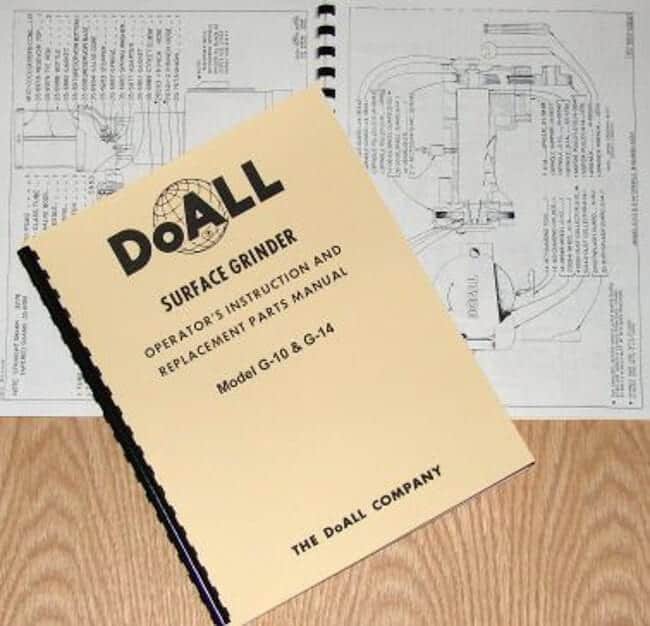 This is a reproduction, not a photocopy, of an original DoAll G-10 & G-14 Operator’s and Parts manual. This manual contains information on set up, lubrication, maintenance, adjustments, and controls as well as a parts list and diagrams. Check contents of the manual below.