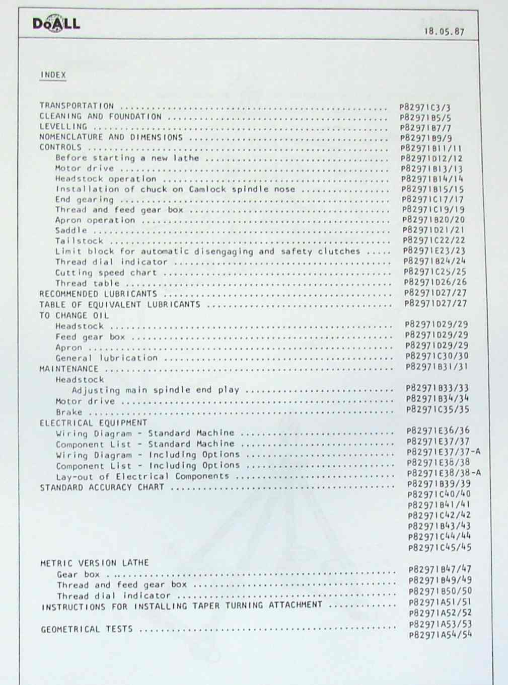 This is a reproduction, not a photocopy, of an original DoAll 13 inch Engine Lathe Operator’s and Parts Manual. This machine was made in Brazil by a company called Romi. Doall made another 13 inch metal lathe during a similar time frame that was made in England and also sold under the Harrison name as an M300. I have the manual for English version of the DoAll 13 inch in my store listed under Harrison M300. This lathe was also sold as a Bridgeport Tormax 13-5 metal lathe.
