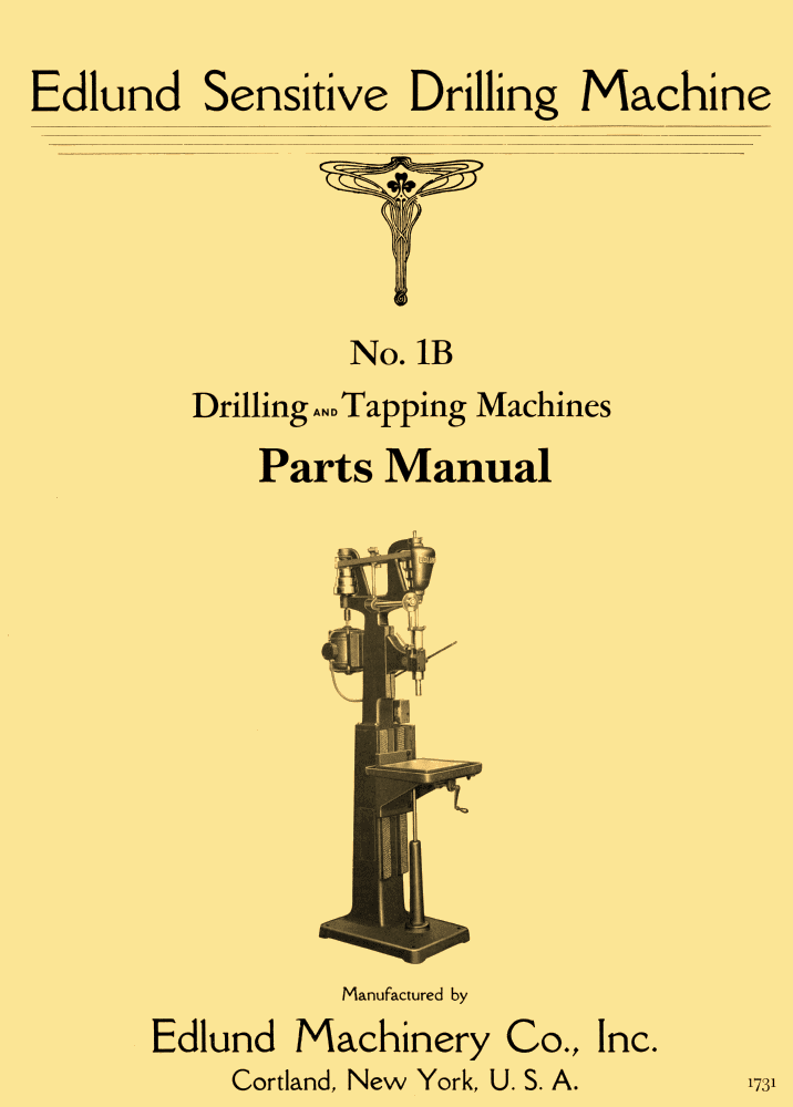 Edlund 1B-7″, 1B-12″ Overhang Drill Press Tapping Machine Service Parts Manual