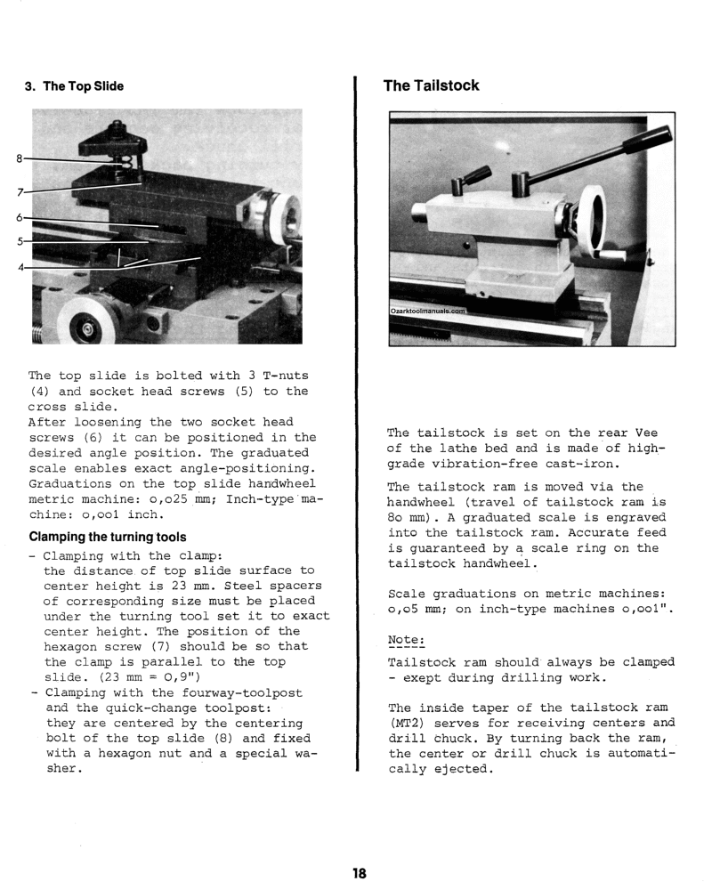 The manual above may help you operate and maintain your metal lathe. If you would like to learn more about metal lathework techniques, the names and proper uses of different lathe tools, and other lathe operations, I would recommend clicking on the pictures of these two books here. We also have a complete series of different machinist books on sharpening, gearmaking, milling machines, and more here: Workshop Machinist Series |