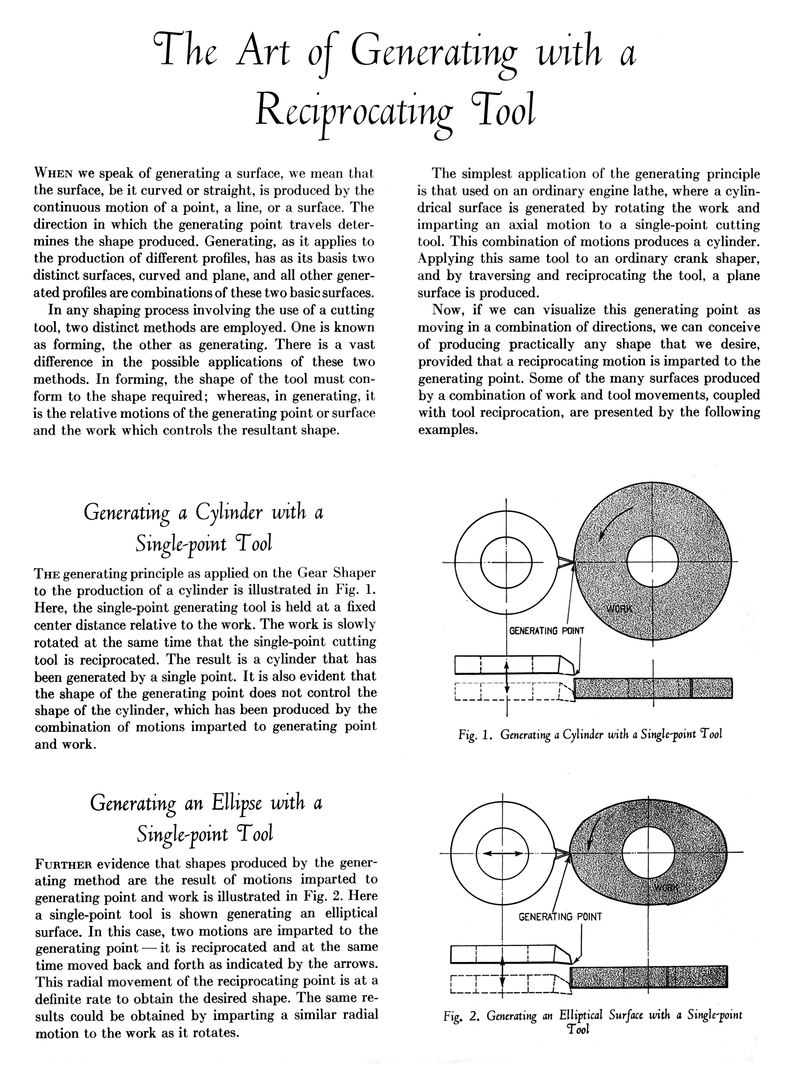 This is a reproduction, not a photocopy, of an original Fellows Gear Shaper Company “The Art of Generating with a Reciprocating Tool” book manual, third edition 1951. This book covers and shows how to perform different shapes and features with different types of reciprocating tools and setups. The book covers complex items like multiple cam and irregular-shaped parts. This book is for designers and those interested in lowering production costs.