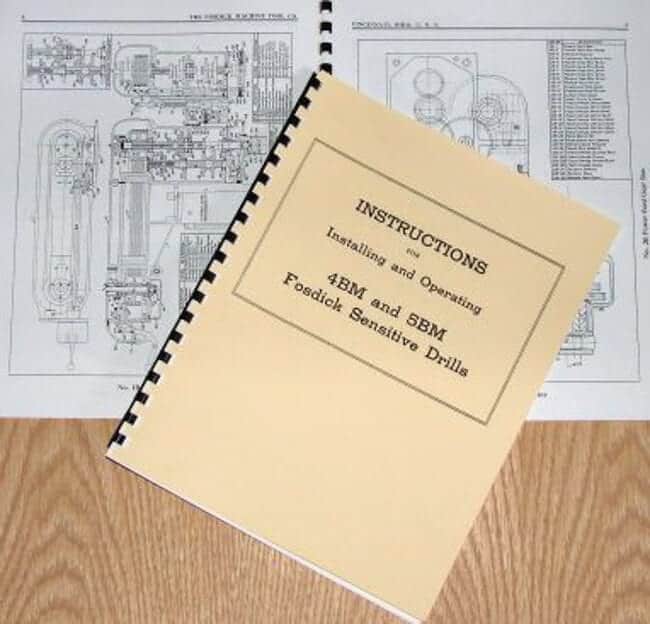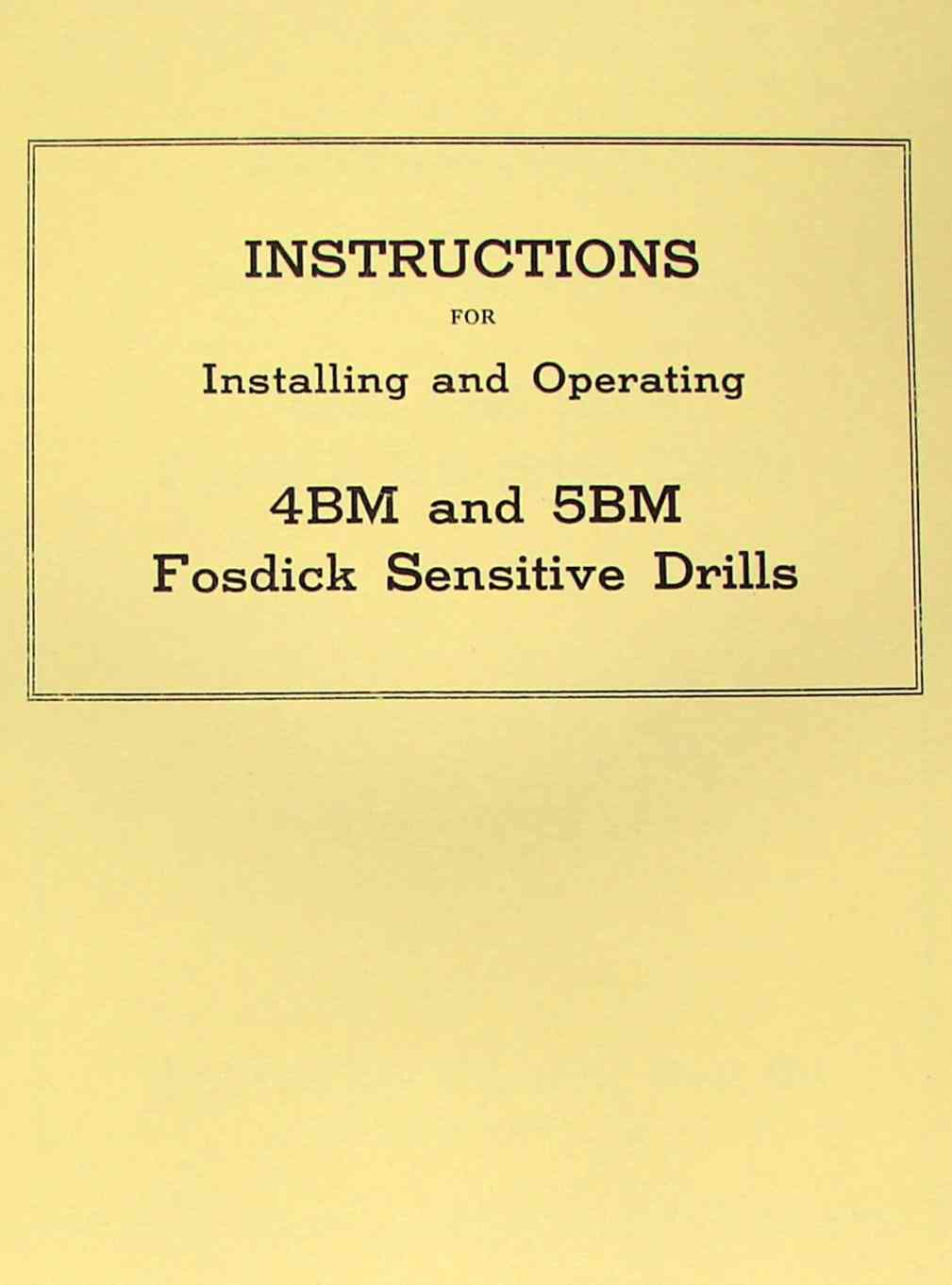 This is a reproduction of an original Fosdick 4BM 5BM Sensitive Drill Presses Instructions and Part Manual. It contains information on operations of this machine, and parts diagrams with parts numbers.