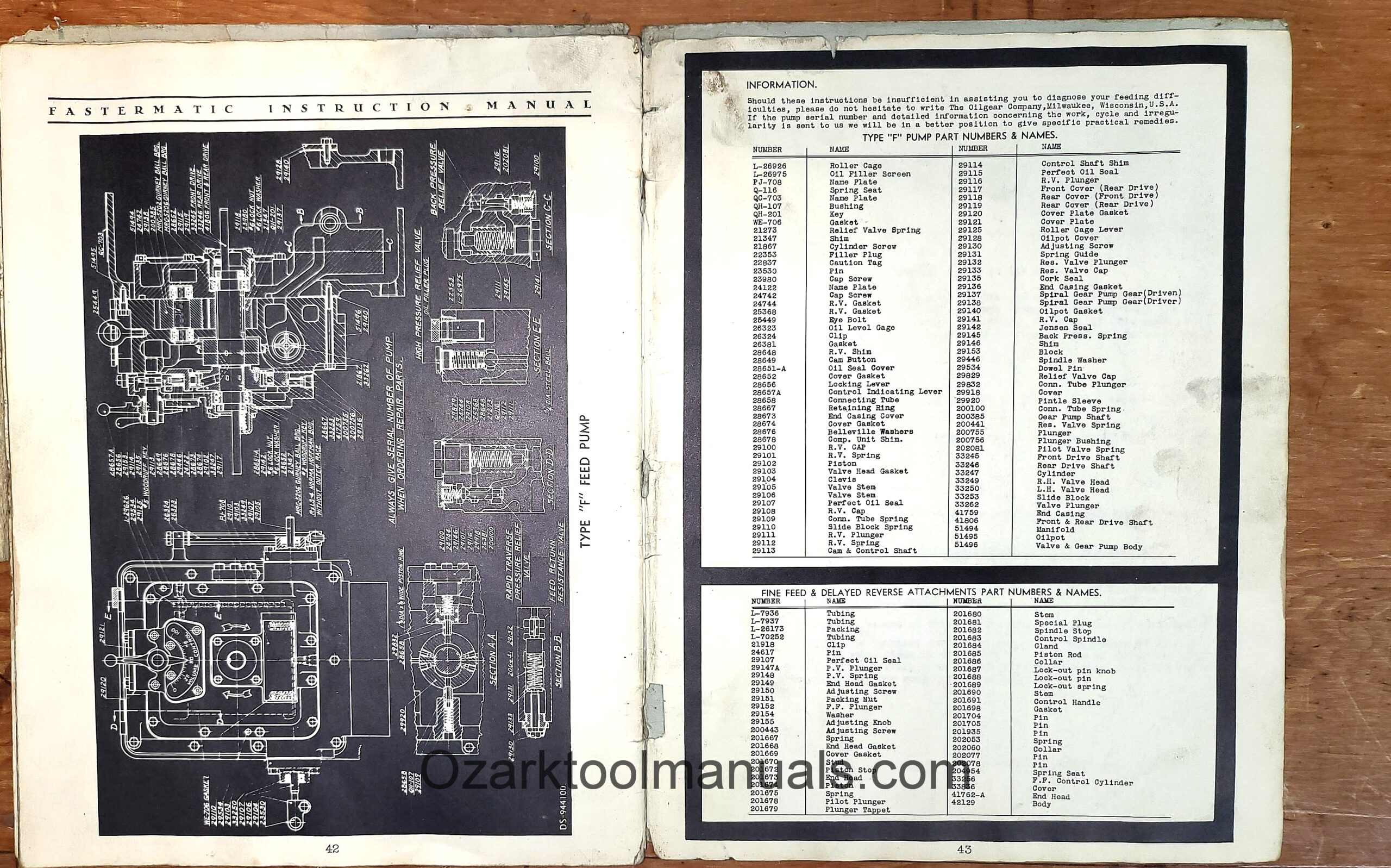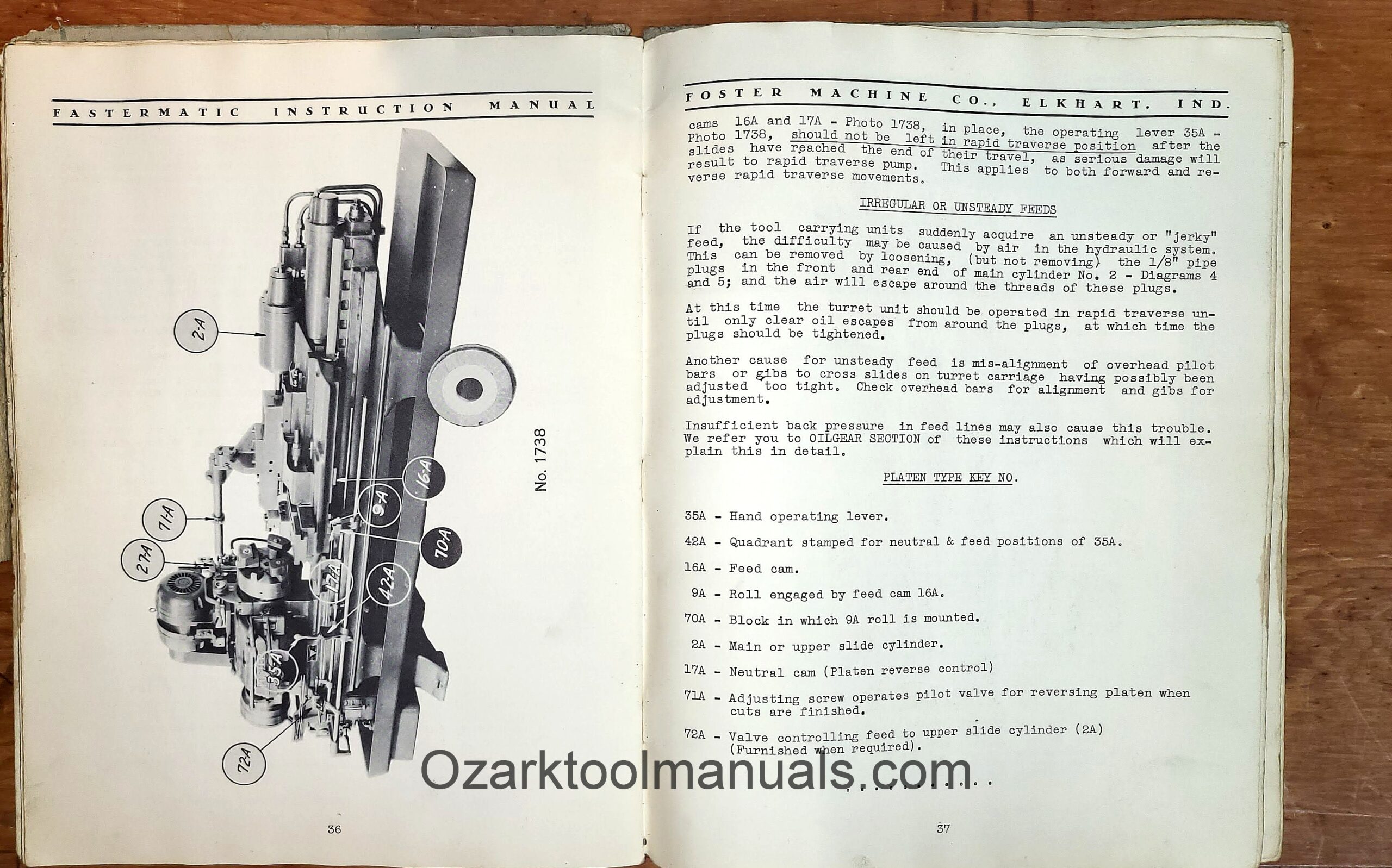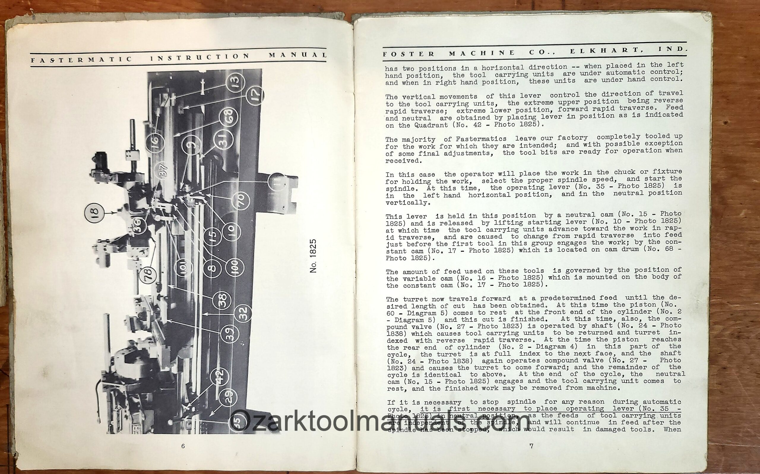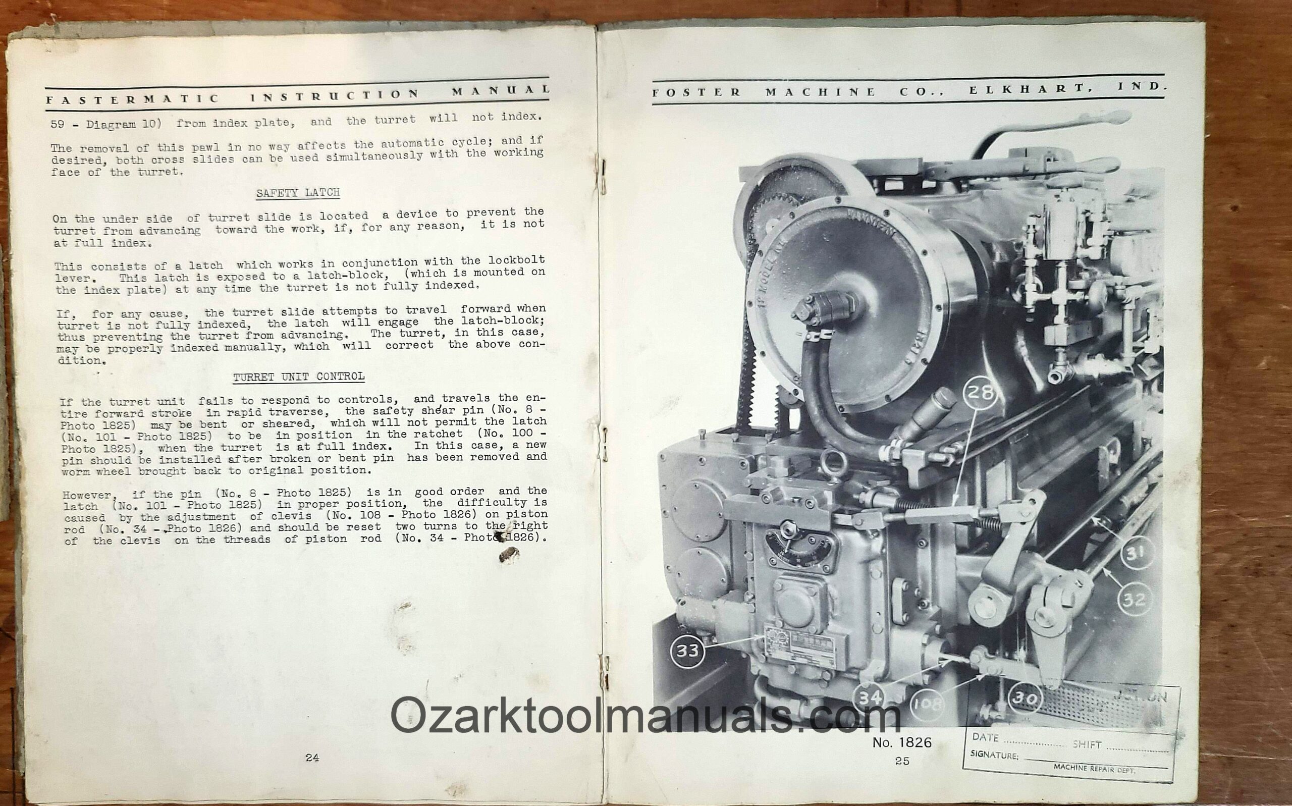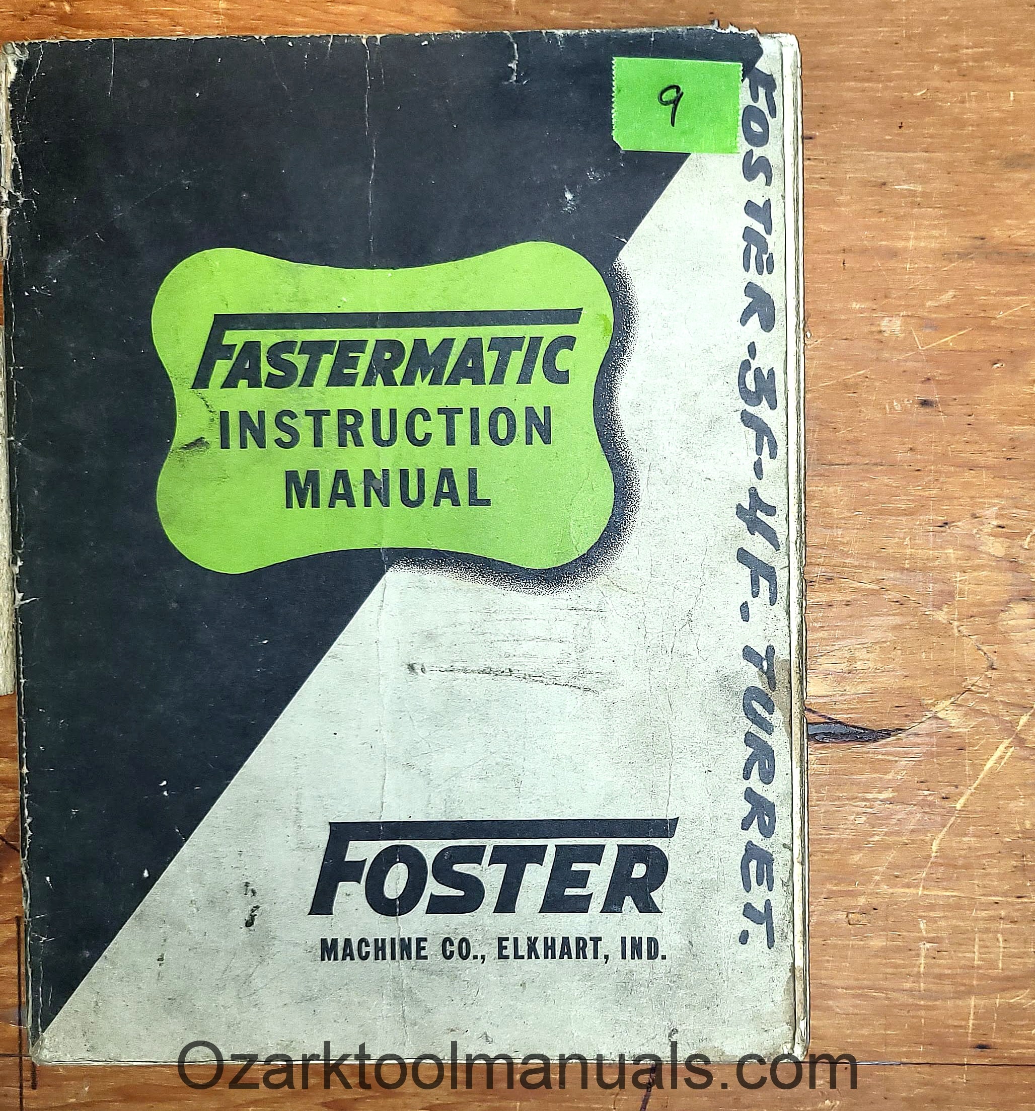 Foster Machine Co. Fastermatic Turret Metal Lathe Instruction Operator Service Manual