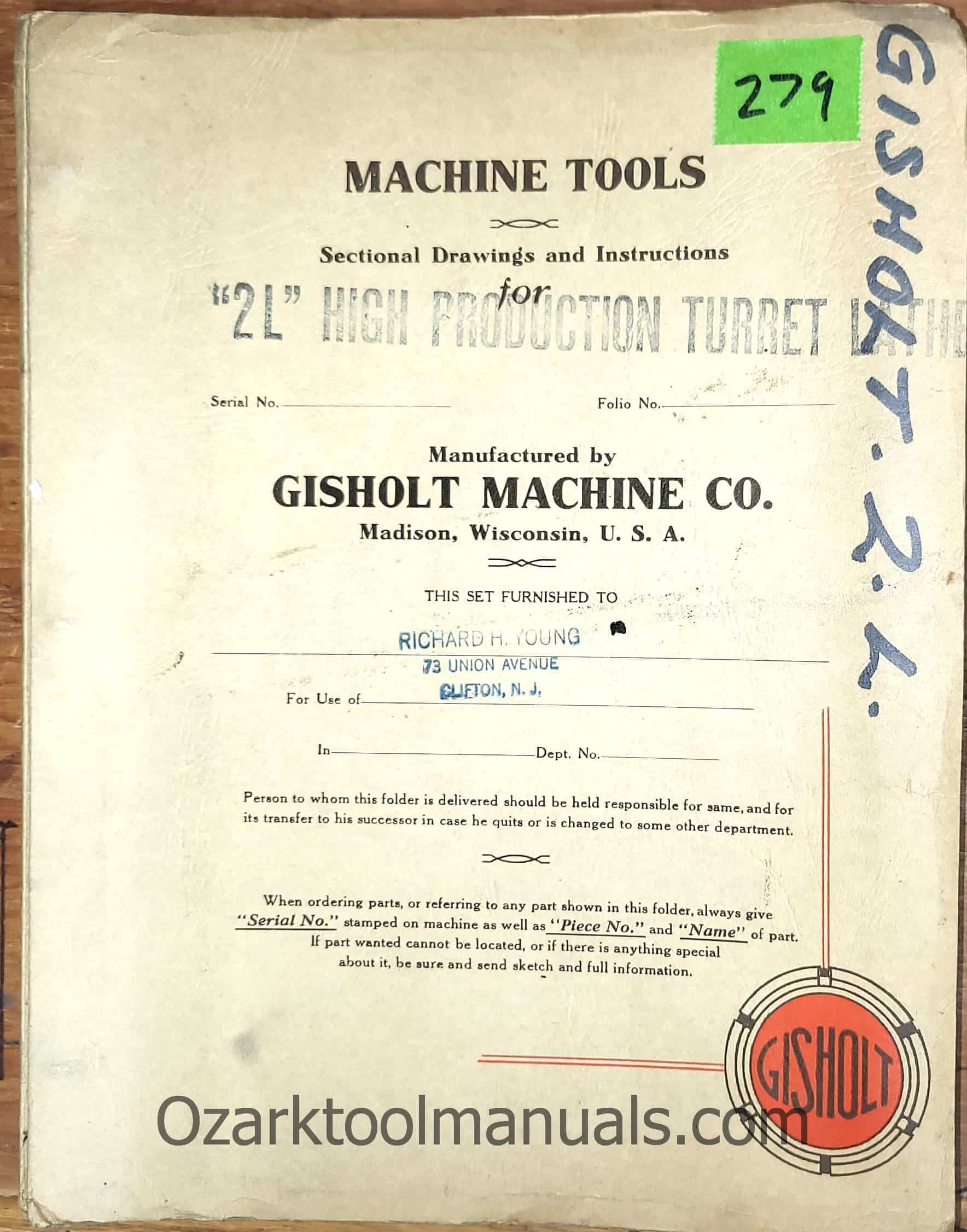 Gisholt 2L Turret Lathe Operation Maintenance Service Parts Manual 3
