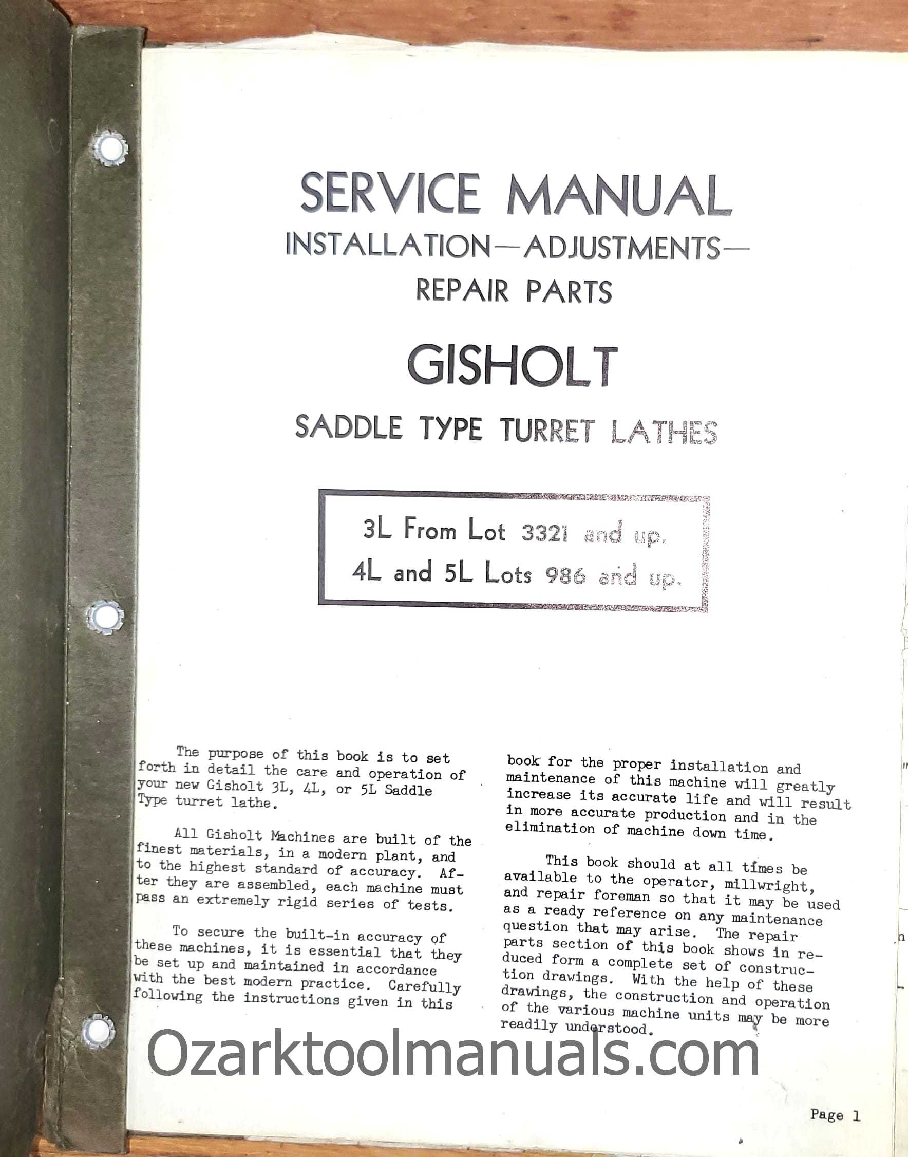Gisholt 3L, 4L, 5L Automatic Turret Lathe Instructions Operator Service Parts Manual 2