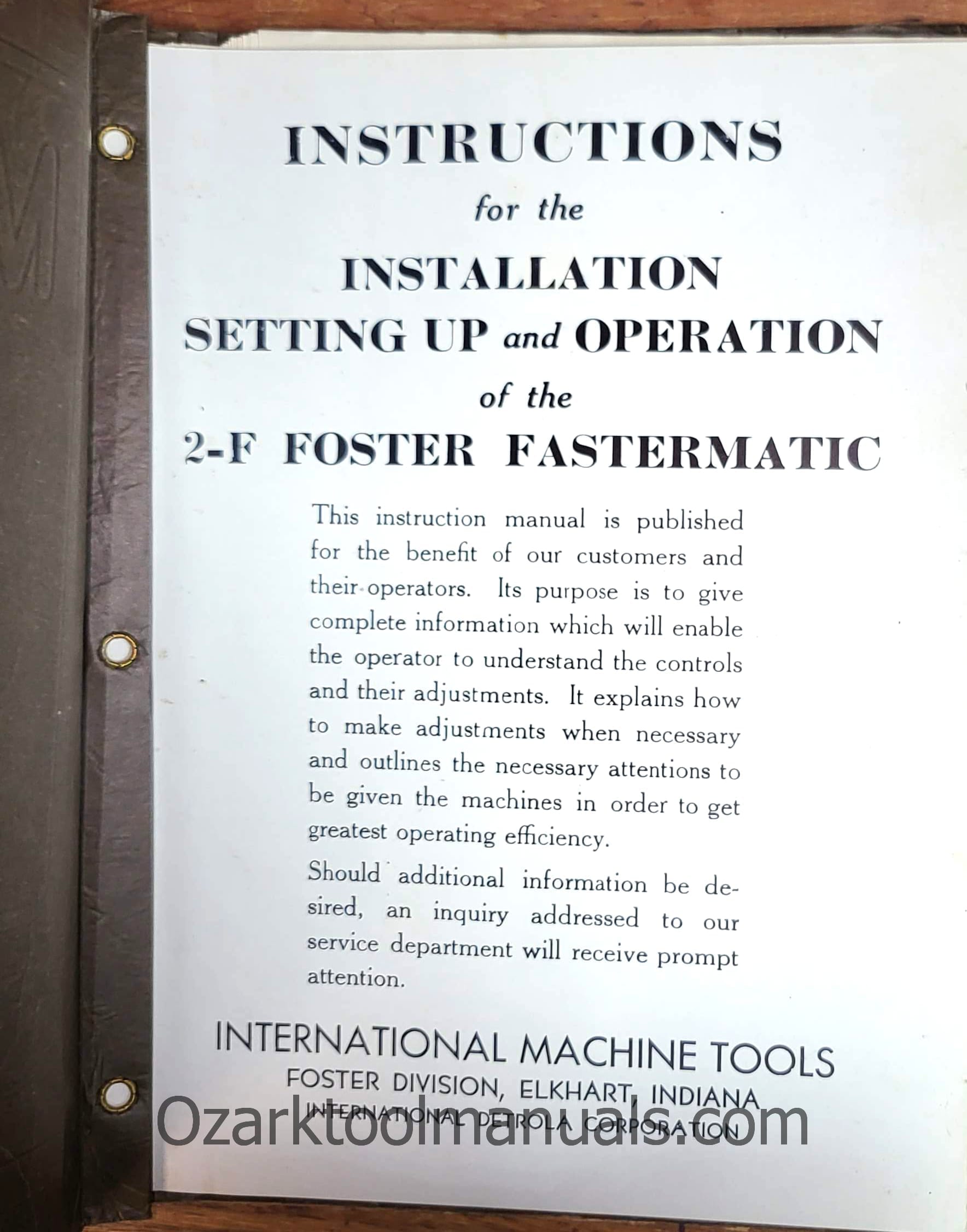 Gisholt Foster 2F Fastermatic Turret Lathe Operation Maintenance Service Parts Manual