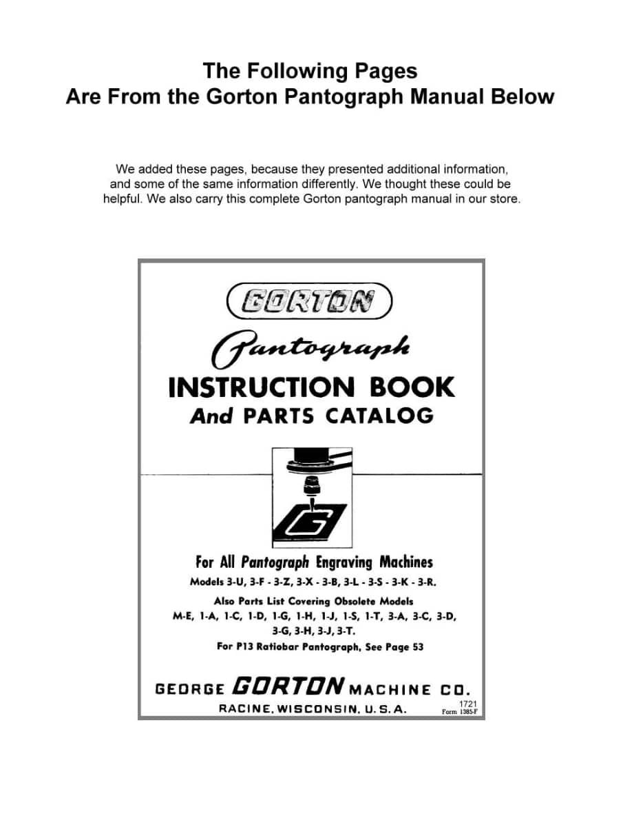 We also added an additional set of instructions from a Gorton pantograph manual. This additional set includes more parts diagrams for the 375-2, and more instructions on how to grind different bits.