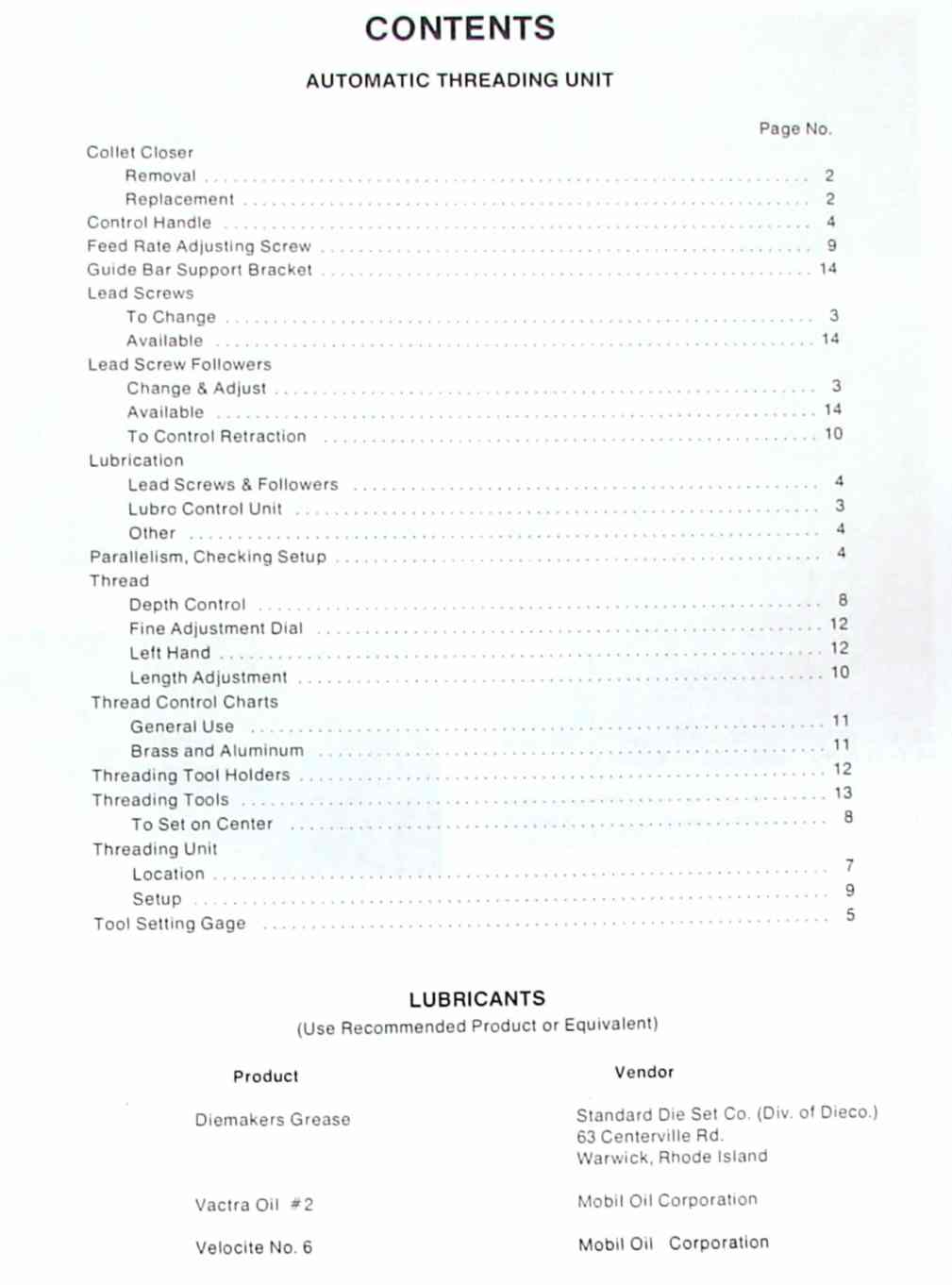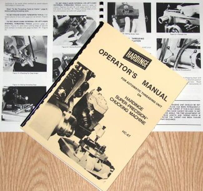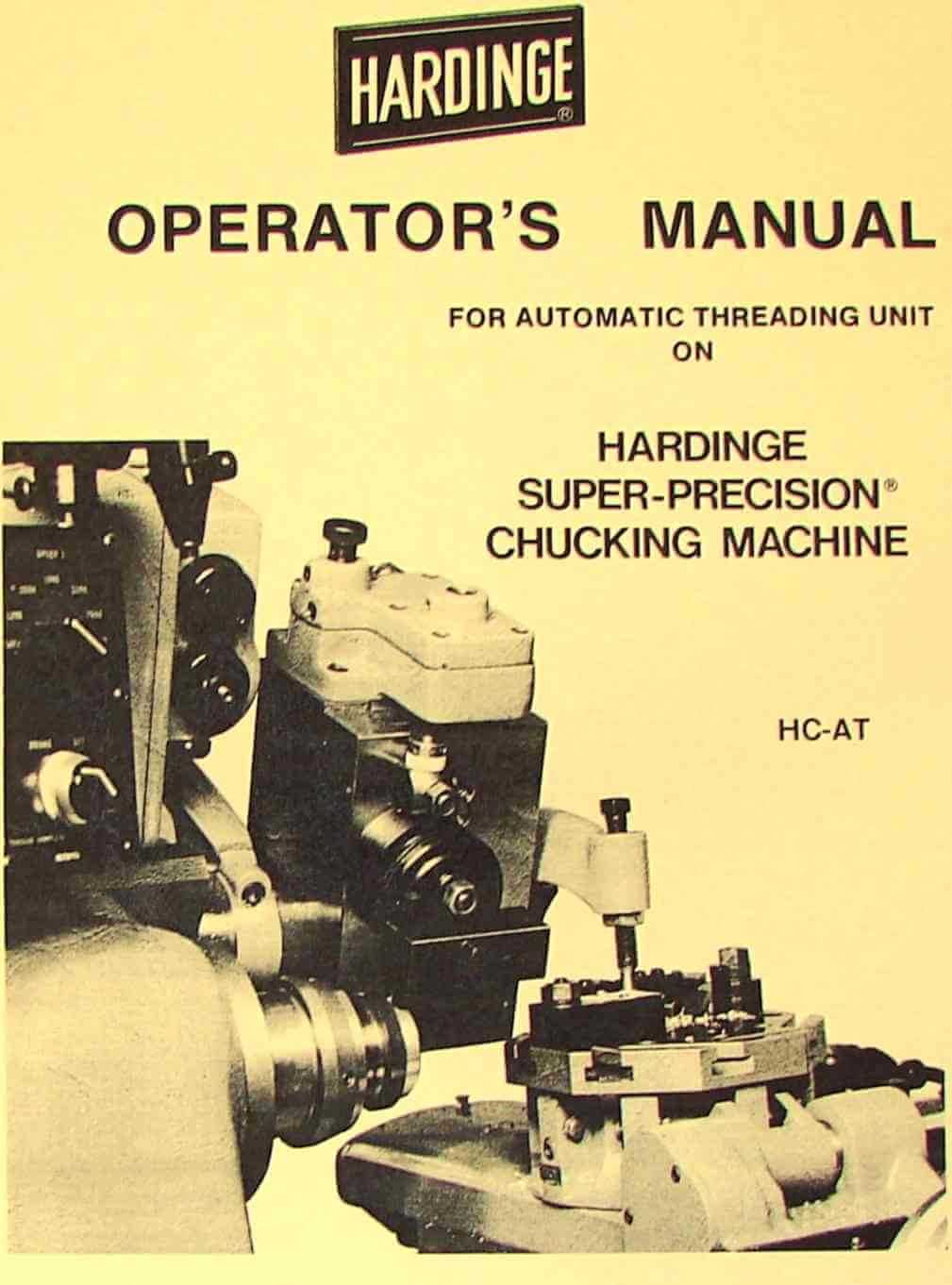 This is a reproduction, not a photocopy, of an original Hardinge Automatic Threading Unit on Model HC-AT Chucking Machine Operator’s Manual. This manual contains information on set up, lubrication, maintenance, adjustments, and controls. If you have this attachment, you need this manual. Check contents below.