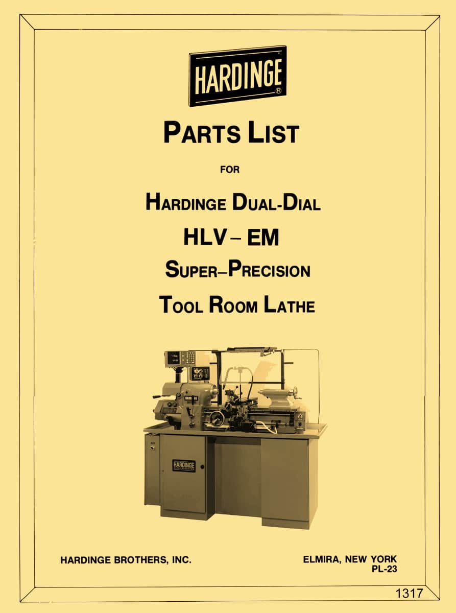 This is a reproduction, not a photocopy, of an original Hardinge HLV-EM High Speed Super-Precision Tool Room Lathe with English and Metric Dials and Dual Gearbox parts manual. This manual contains clear, easy to read, cross-sectional view diagrams of all the parts for these lathes. We have operator’s and maintenance manuals available as well. This manual is also a good reference for the Hardinge HLV-DR model.
