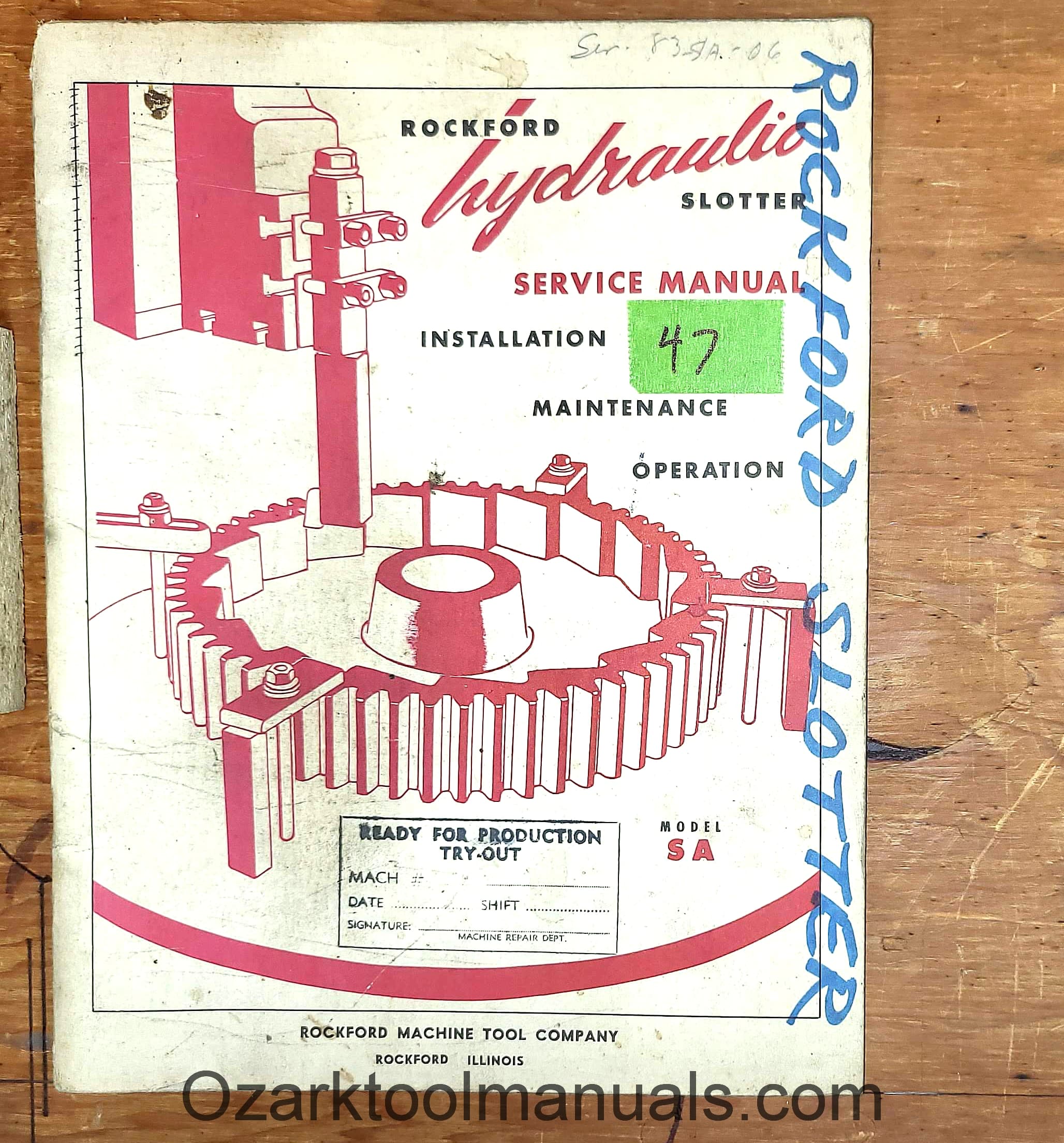 Rockford 12″ & 20″ Hydraulic Slotter Service Installation Operation Maintenance Manual